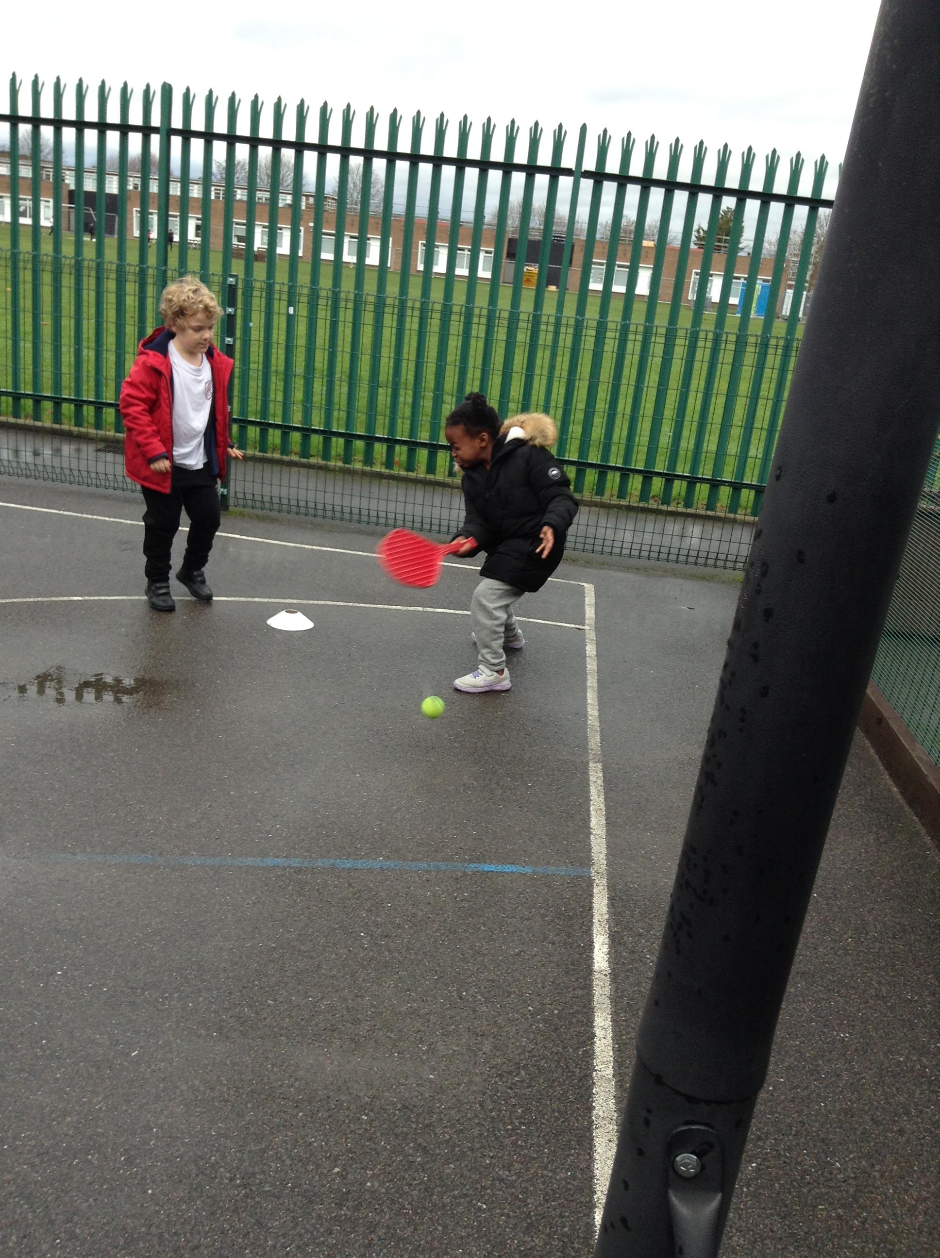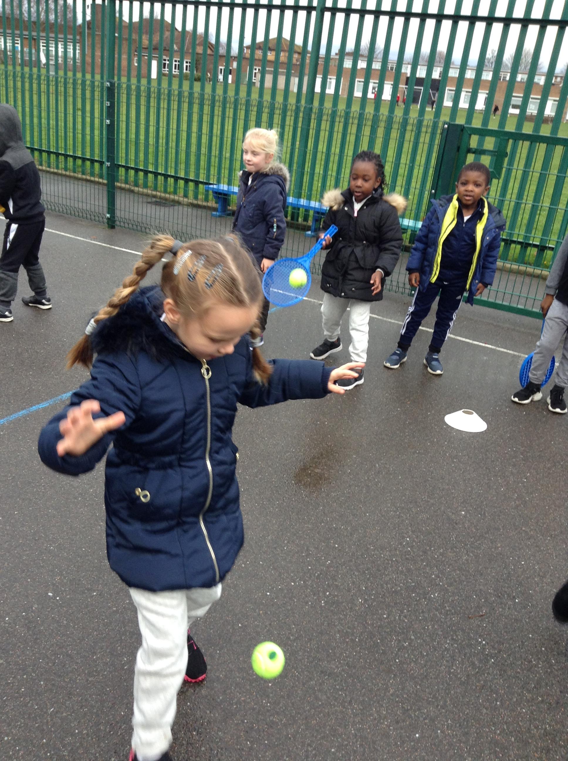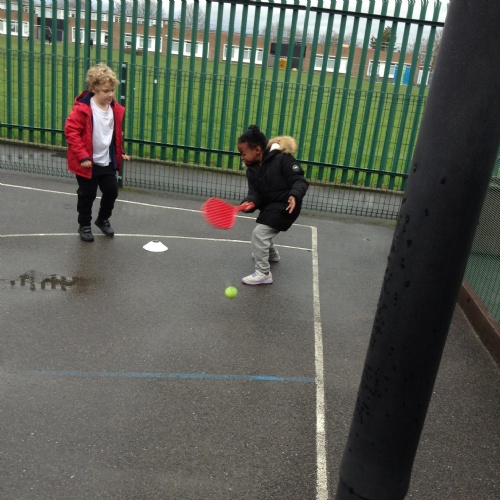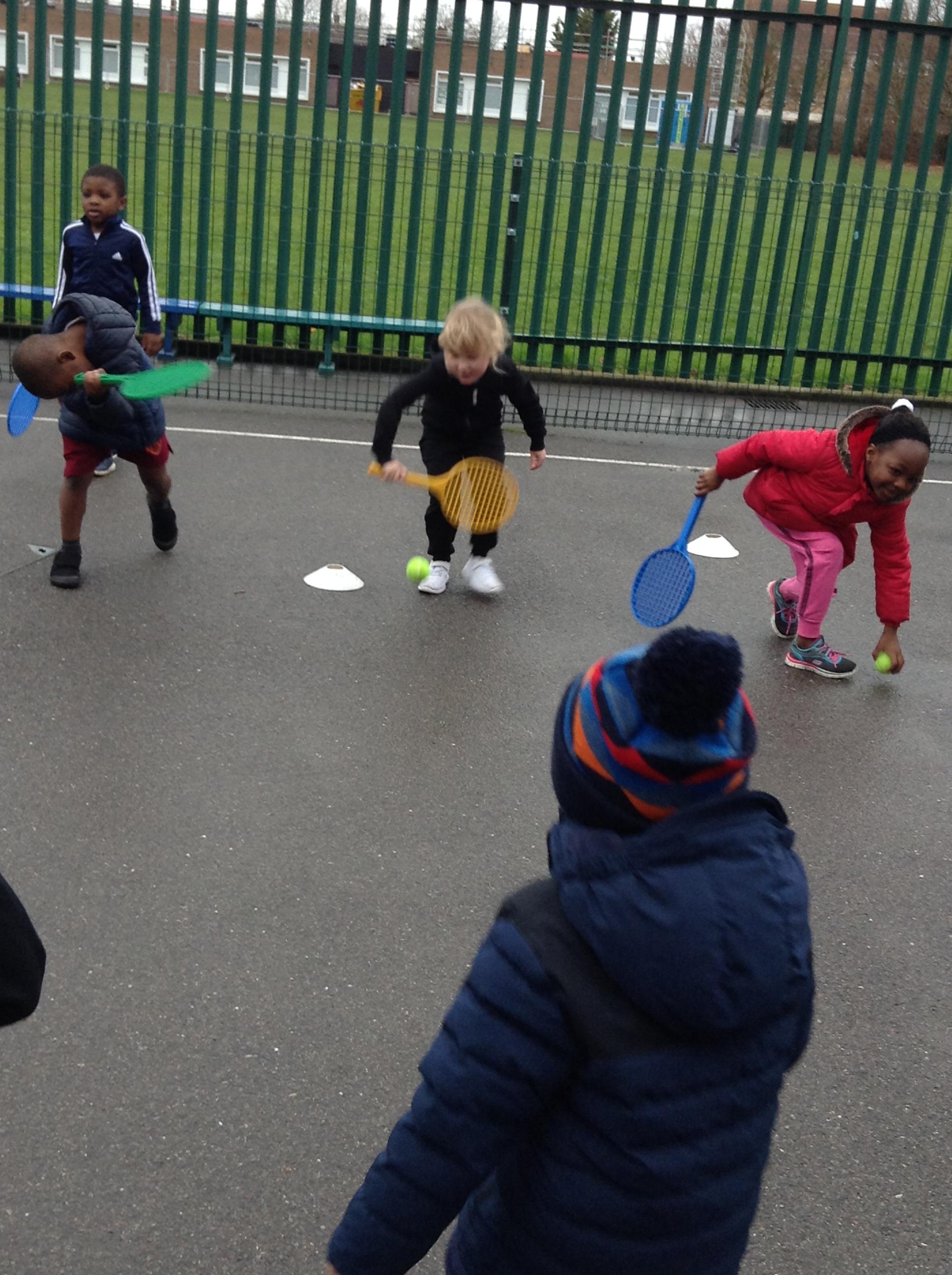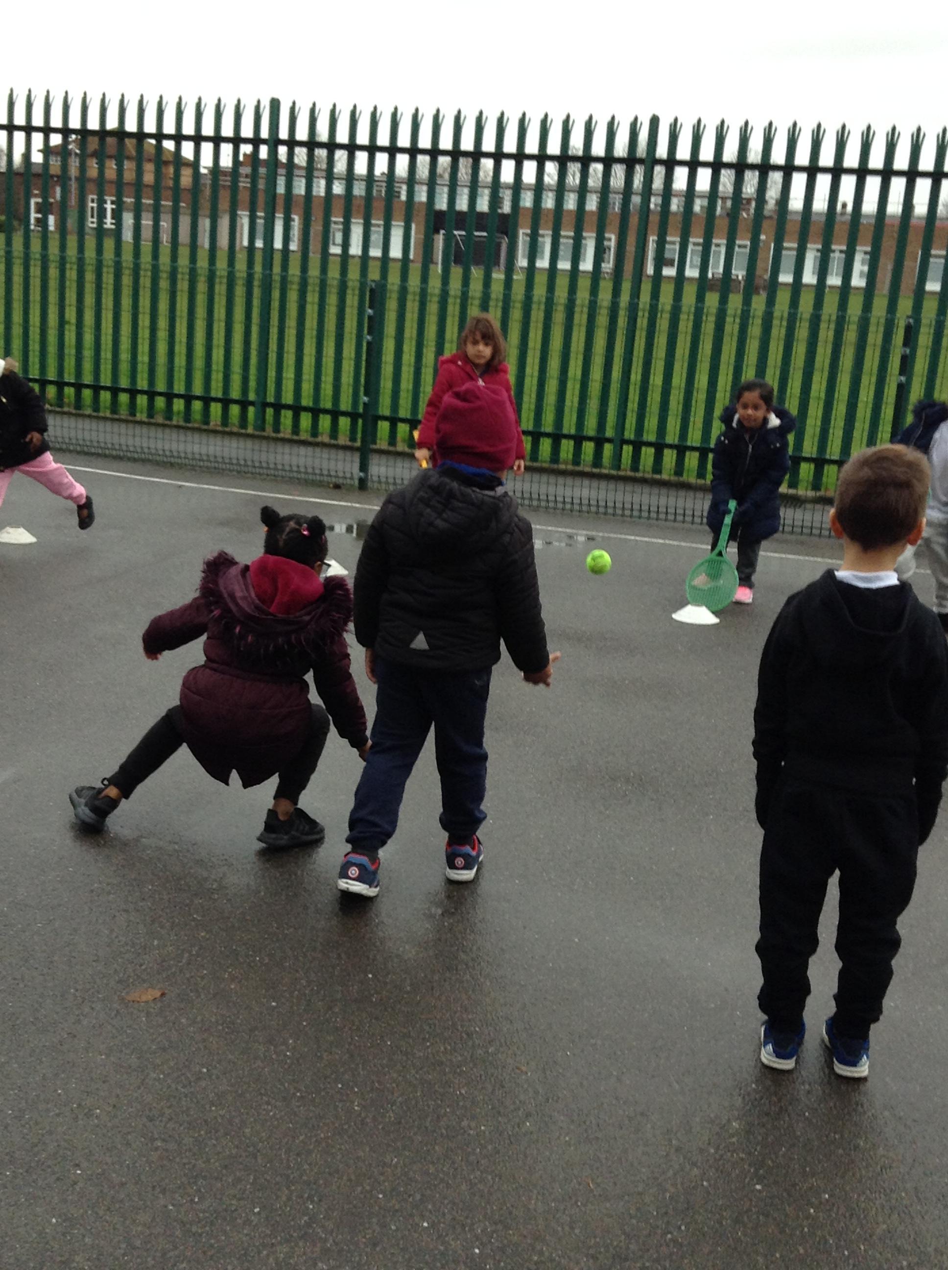 6.12.16: Today in PE we continued to work on throwing and stopping the ball. We did a good job at using the tennis rackets to hit the ball to our partners.