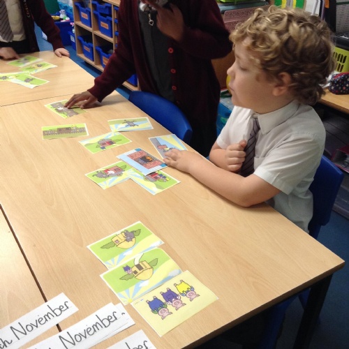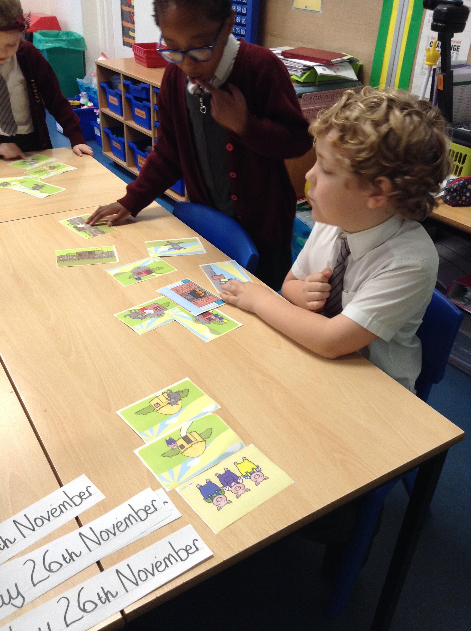 26.11.19: In our English learning today we worked as a team to sequence the events from the story of 'The Three Little Pigs'. We then went on to think about how the little pigs felt when their mother told them that it was time to leave the family home.