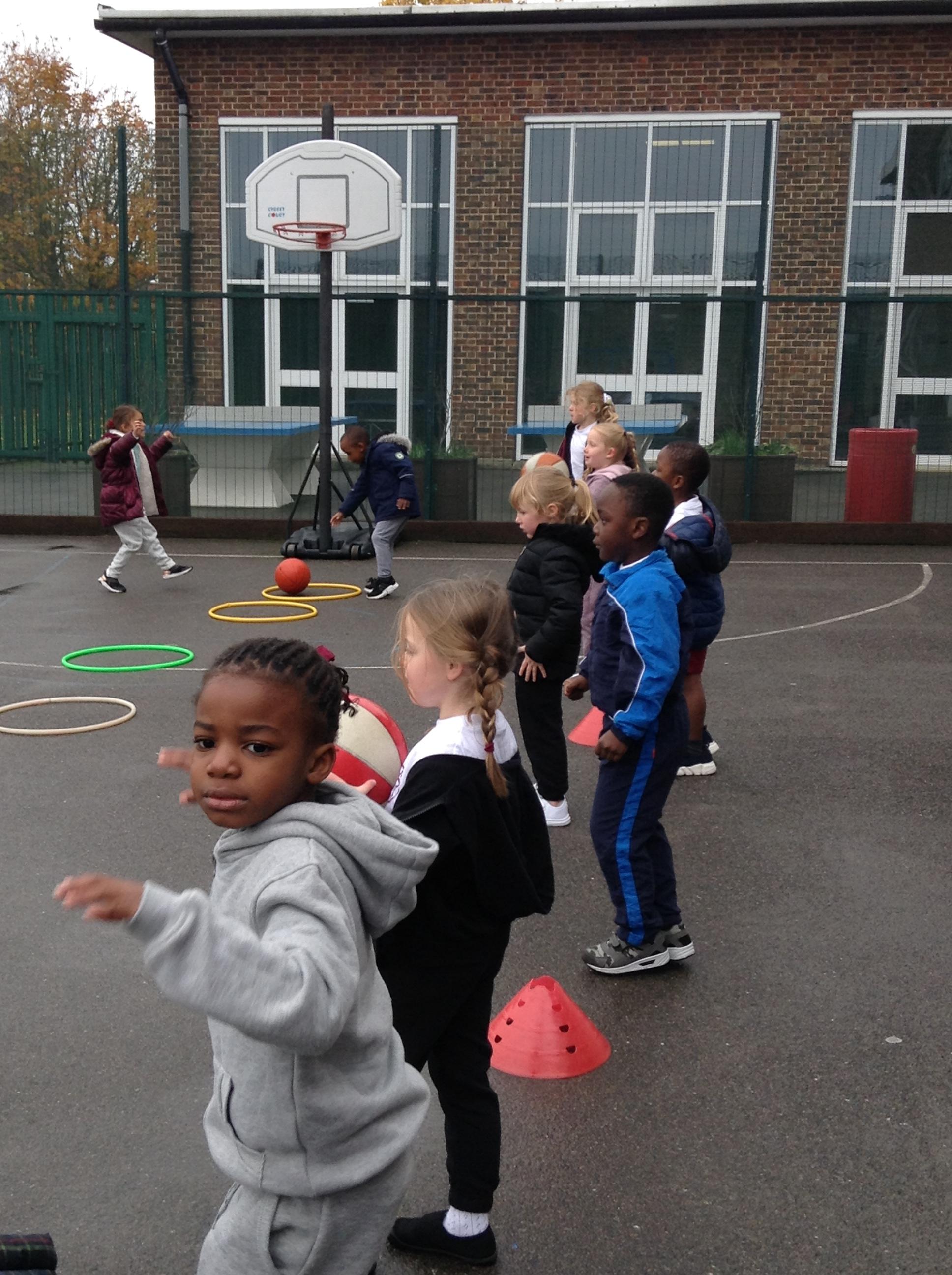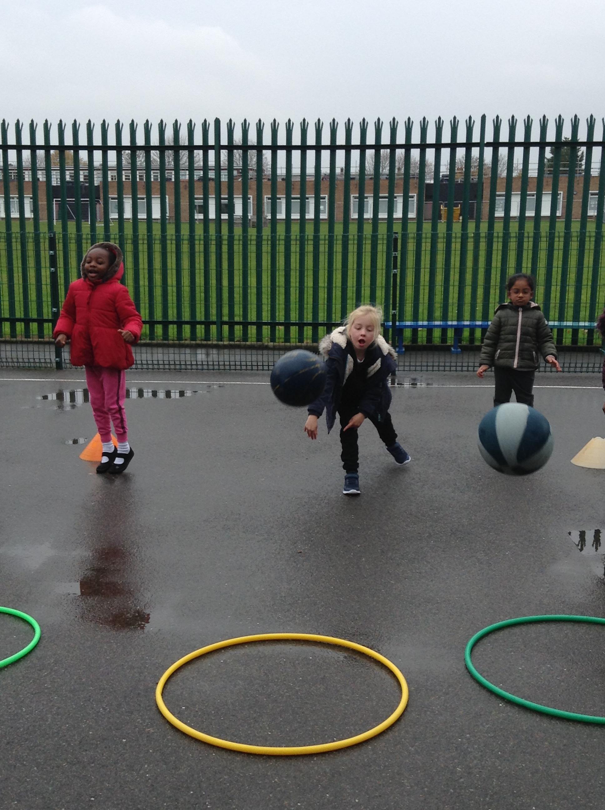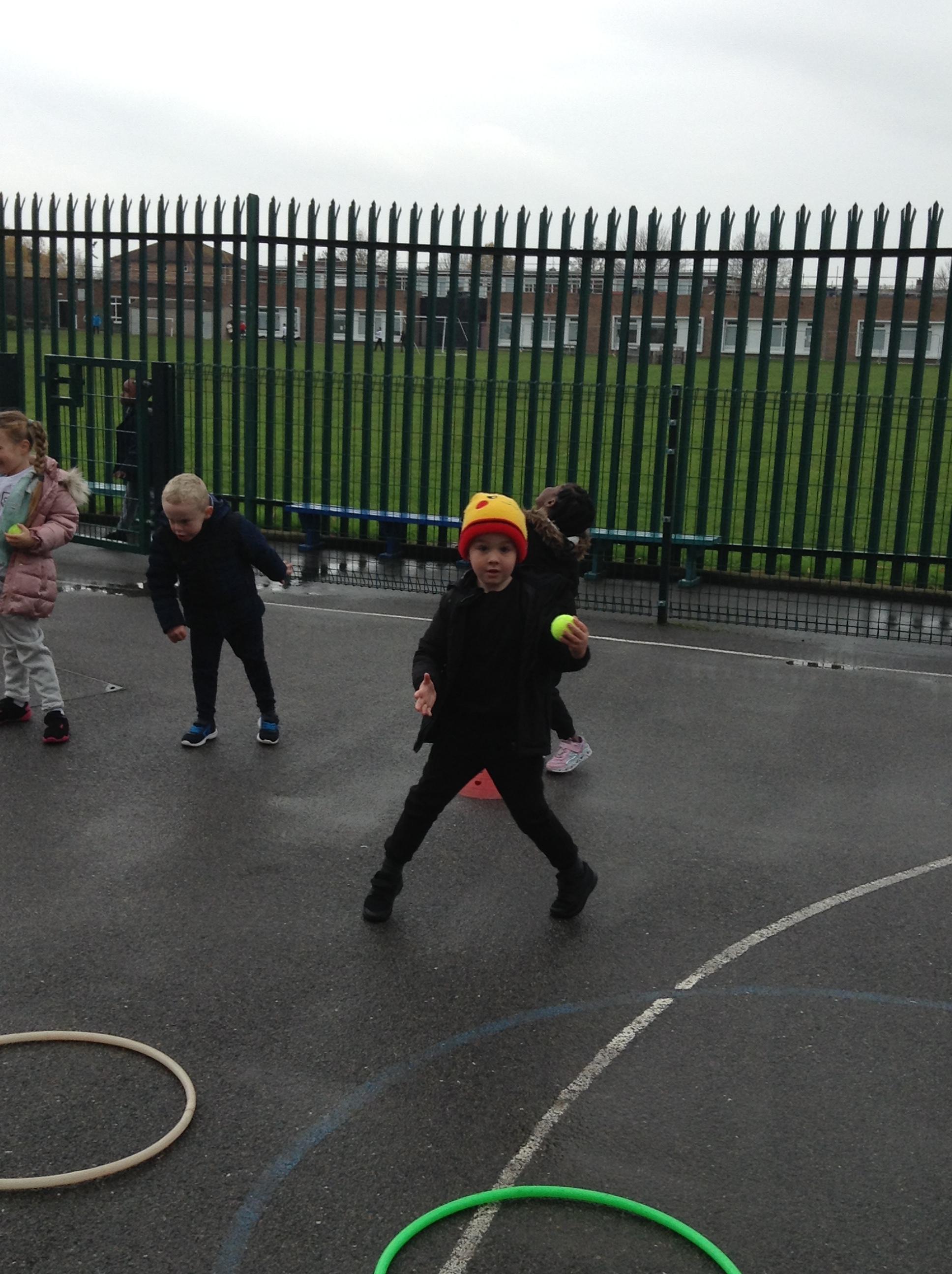 15.11.19: PE for this term is about throwing, hitting and catching. In our lesson today we practised throwing the balls using a chest pass. We had to remember to get our hands ready to catch the ball safely.