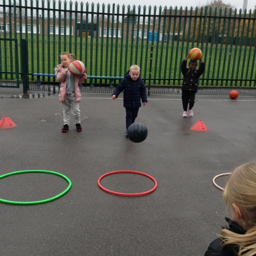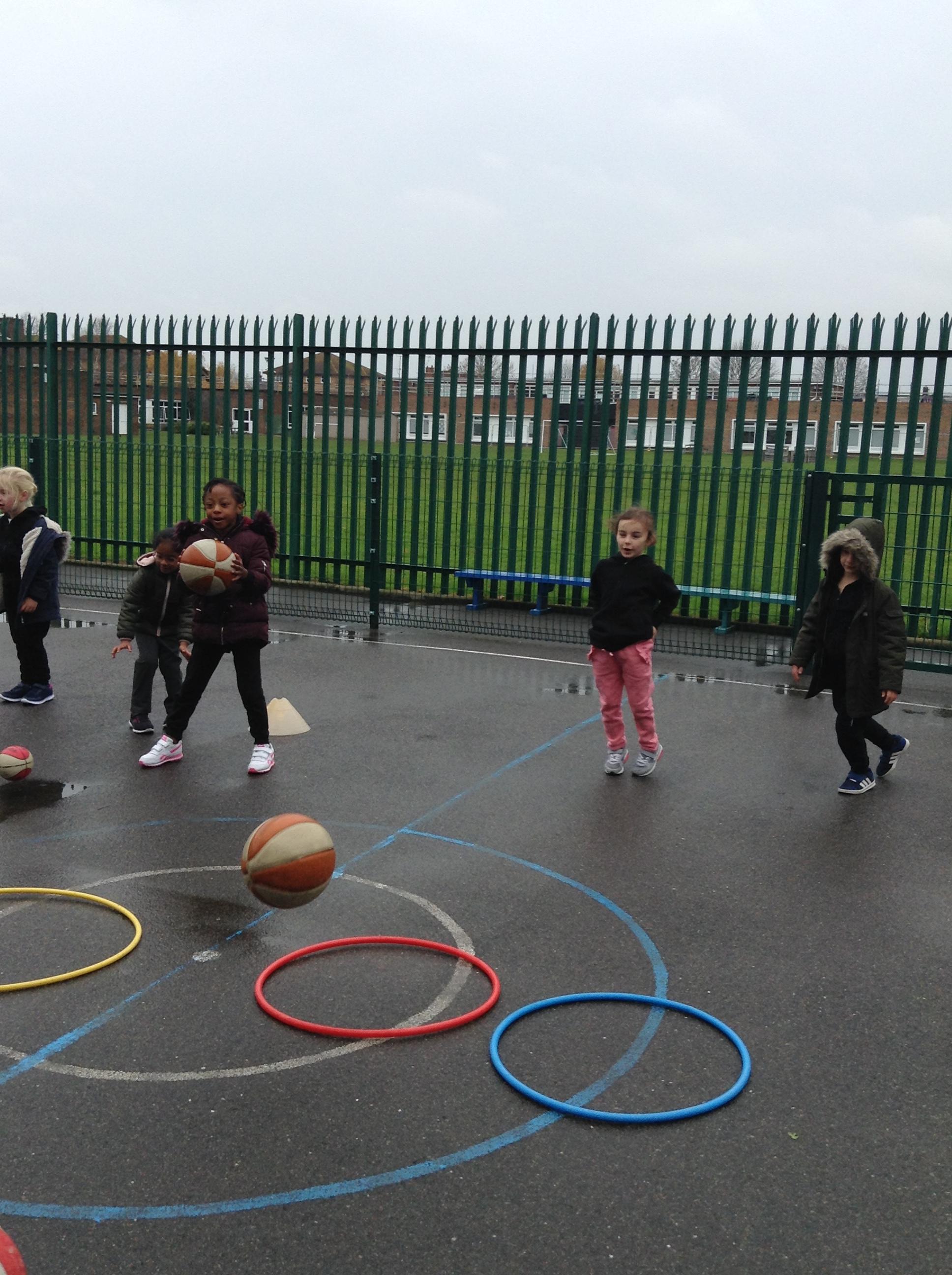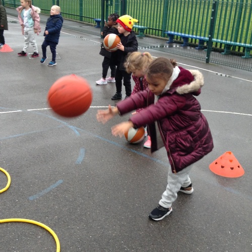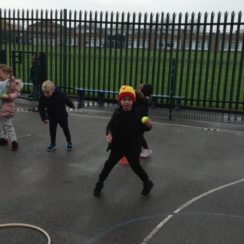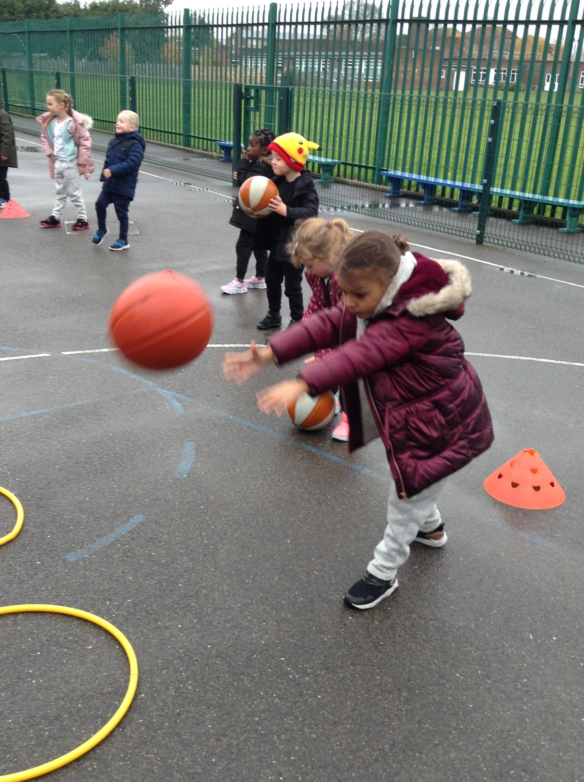 15.11.19: PE for this term is about throwing, hitting and catching. In our lesson today we practised throwing the balls using a chest pass. We had to remember to get our hands ready to catch the ball safely.
