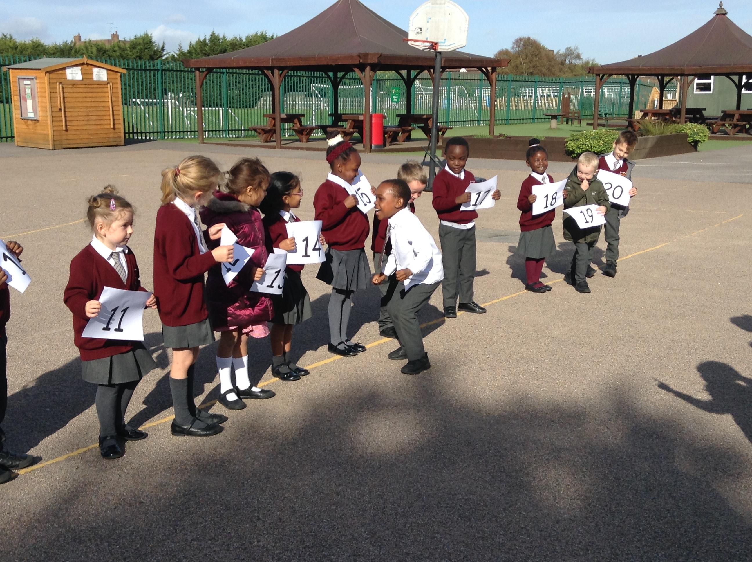 10.10.19: In maths today we have been learning to takeaway using lots of different strategies. We had lots of fun becoming a 'human number line' and practised jumping back. '