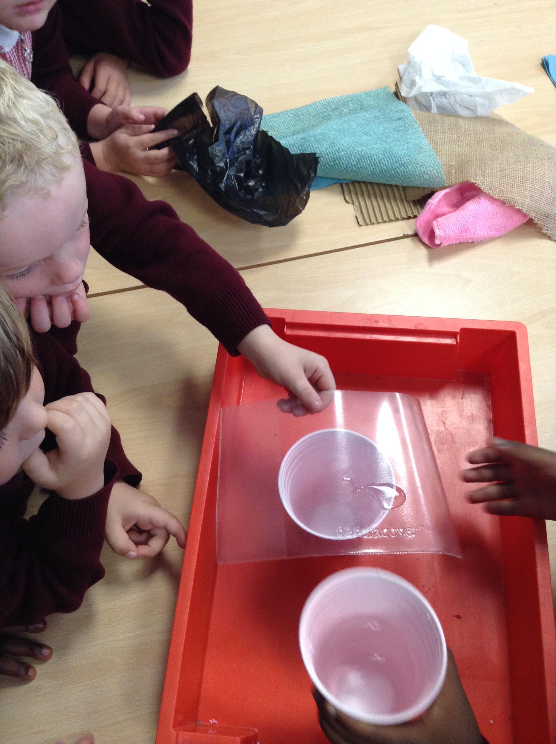 24.9.19:Science has been lots of fun! We had to find the best material to make a waterproof coat. We tested lots of everyday materials to see which one was the best.