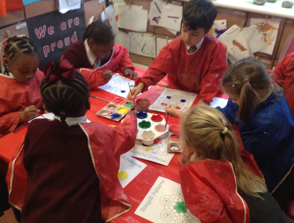 This week we have been learning about the Hindu festival of Diwali. We learned about how Hindu children celebrate Diwali and the story of Rama and Sita, which the children acted out with puppets. We also made our own diya pots, rangoli and mehndi patterns and even did some lovely writing about Diwali.
