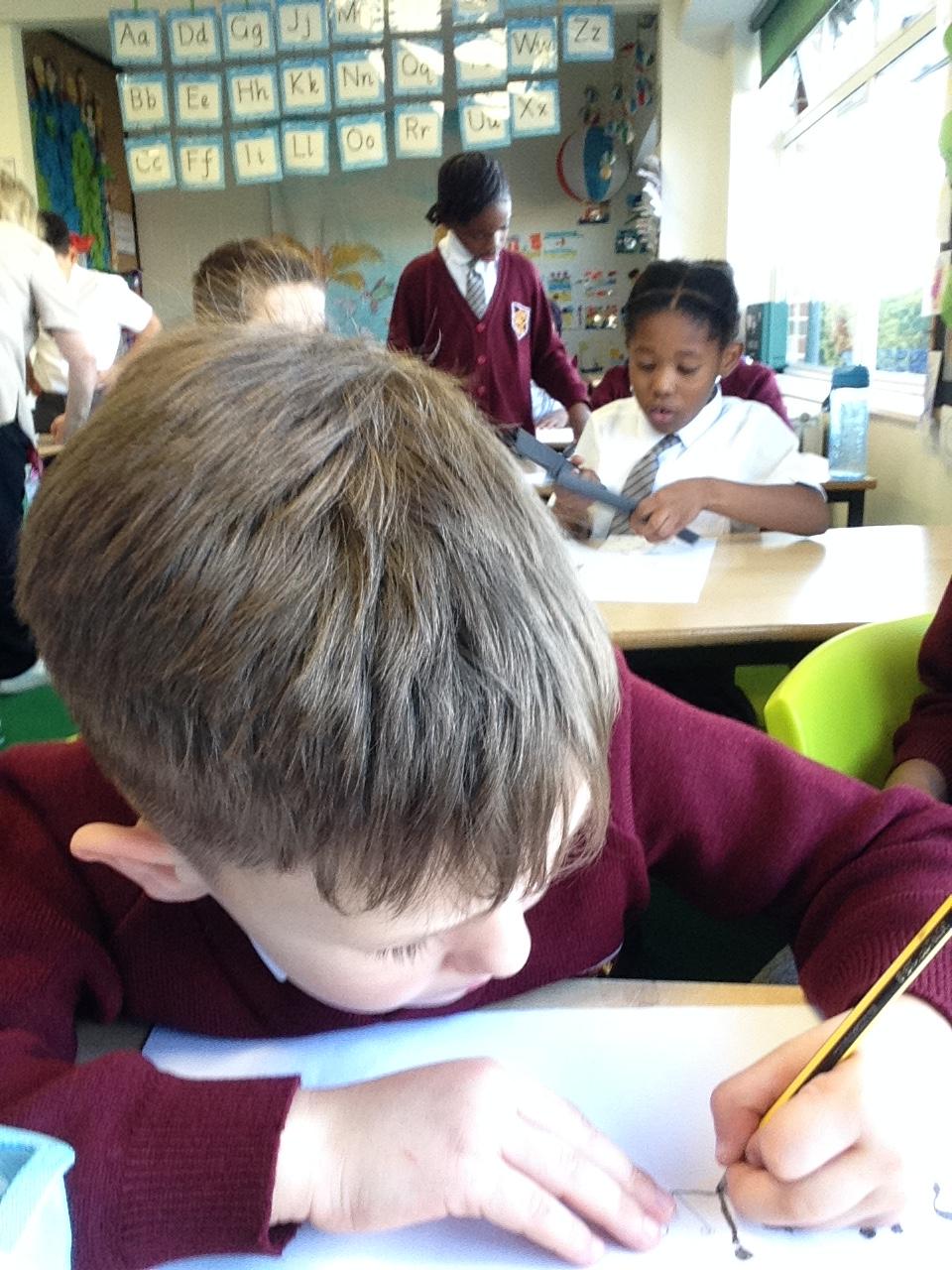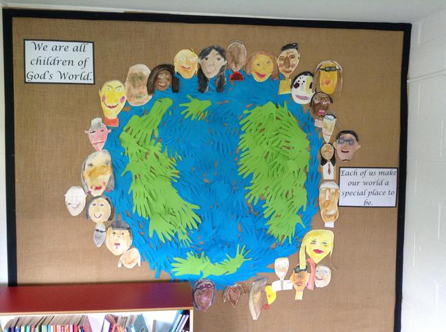 We used our creative lessons to make a whole class display. We each drew around our hands and used them to make our world. Our portraits are a reflection of how we see ourselves.