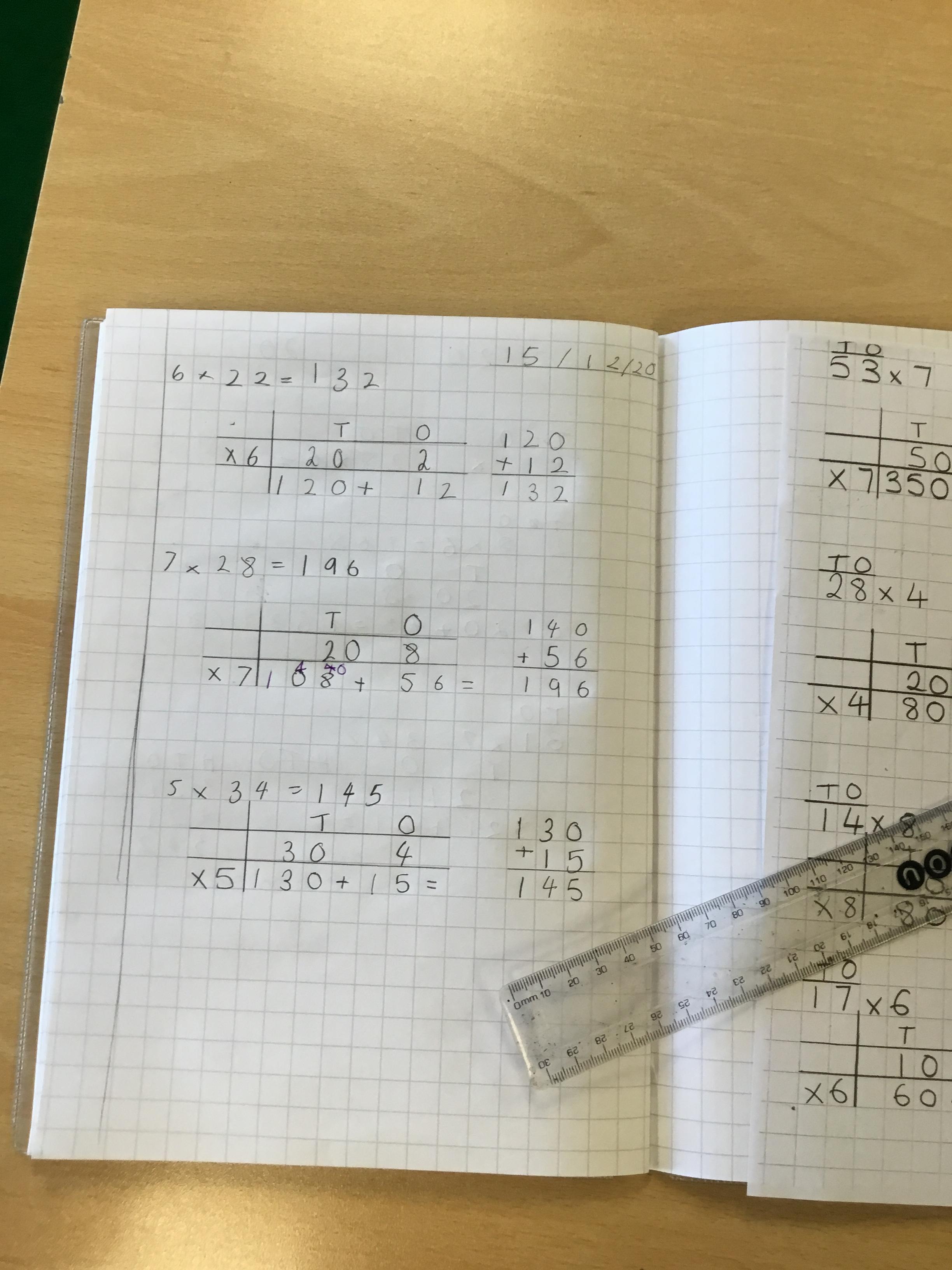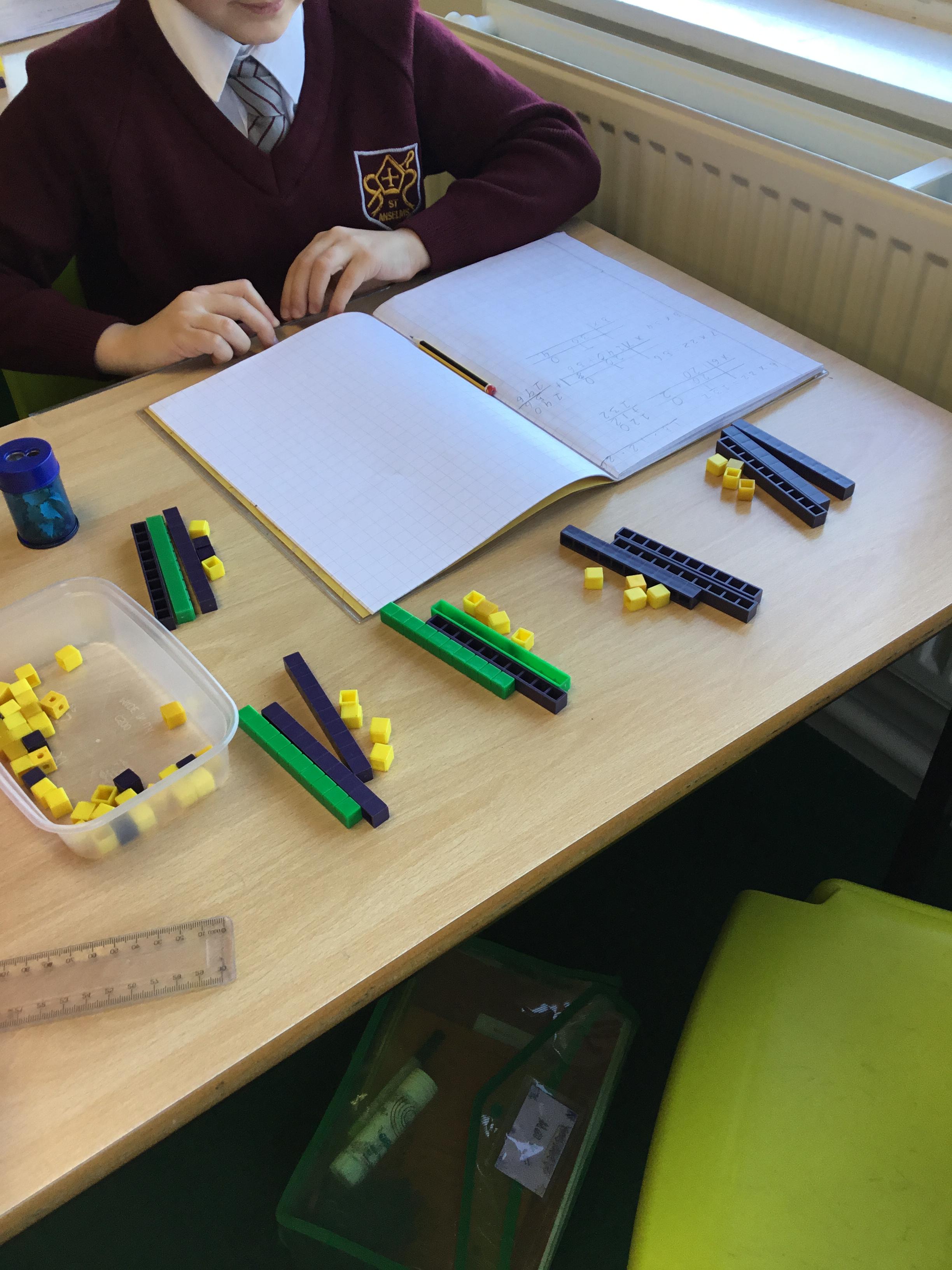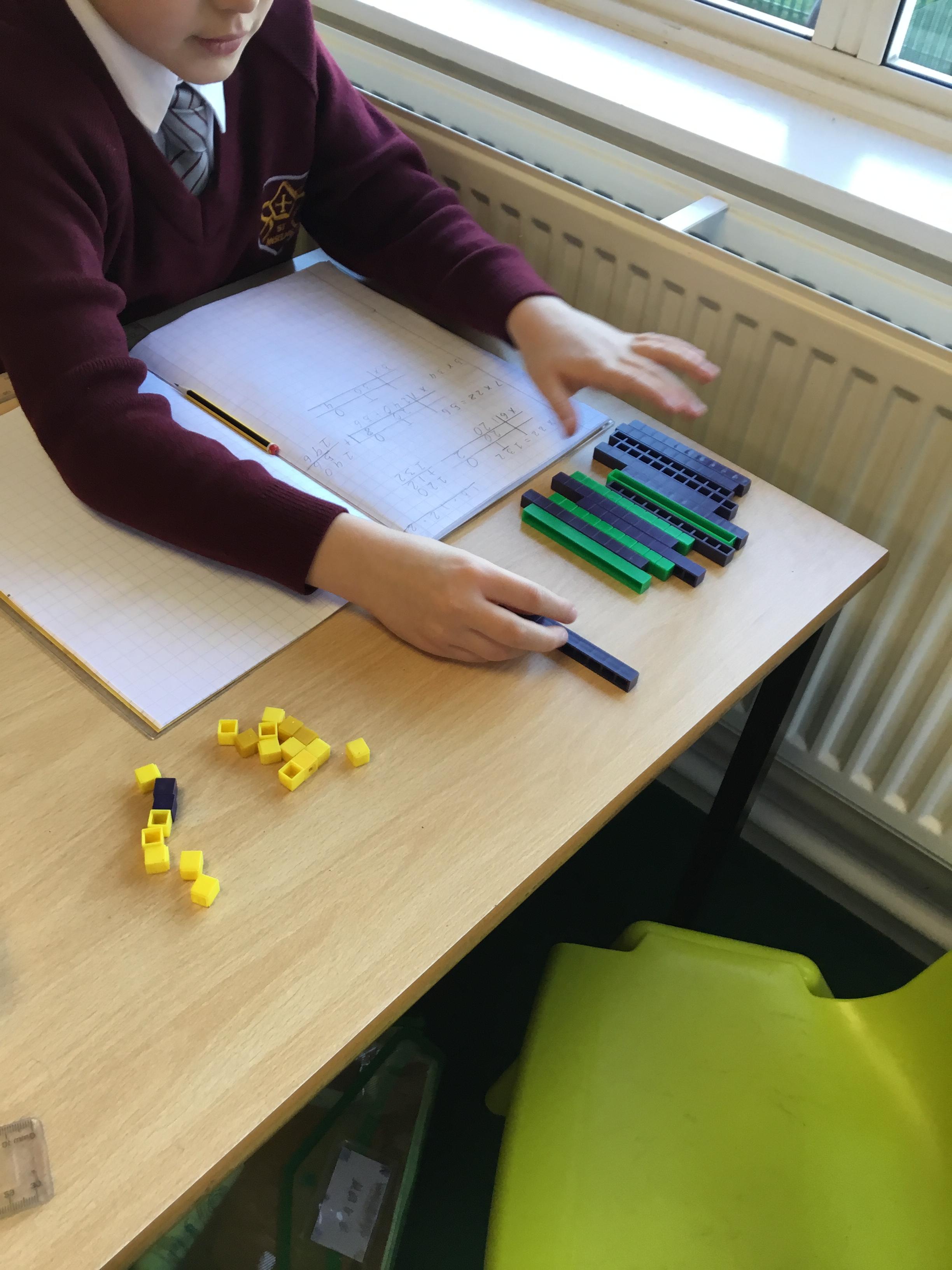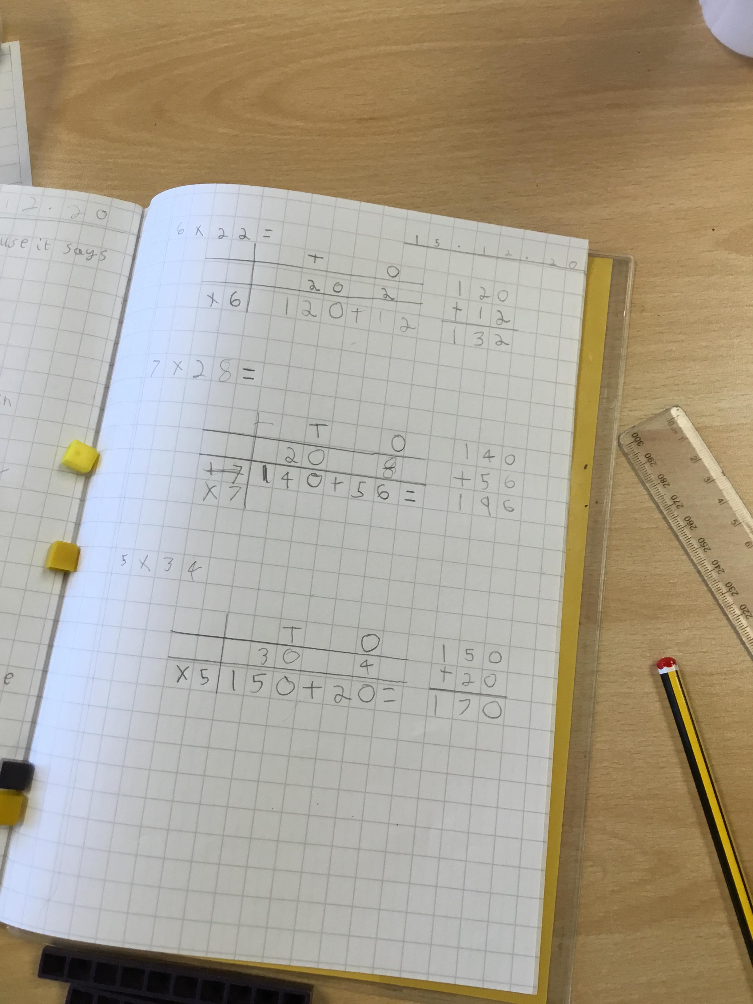 In Maths we have been learning to multiply a 2 digit number by a 1 digit number. We started by using the resources to help us to visualise what we needed to do. We then started breaking the 2 digit number down into tens and ones to simplify the equation.