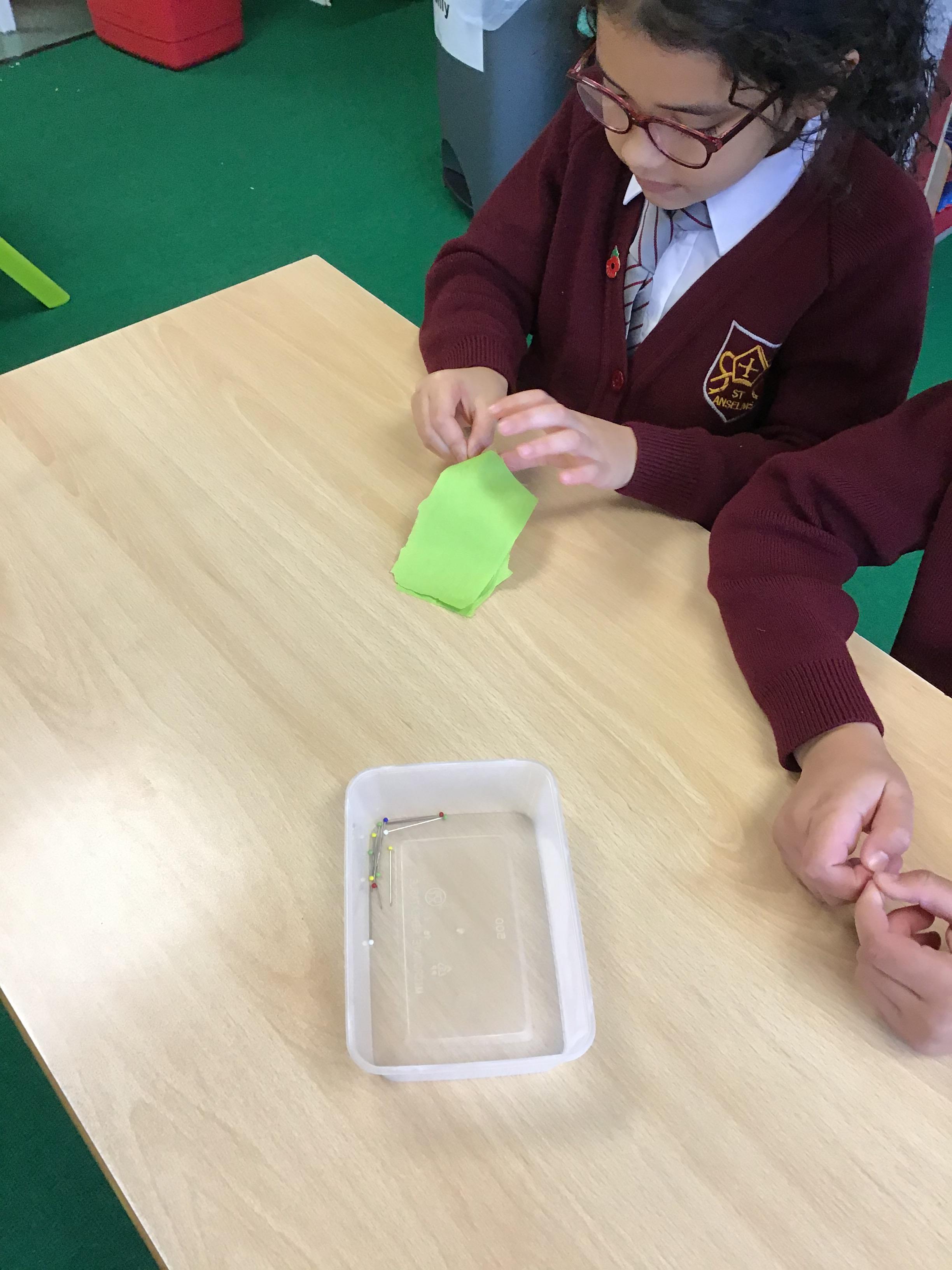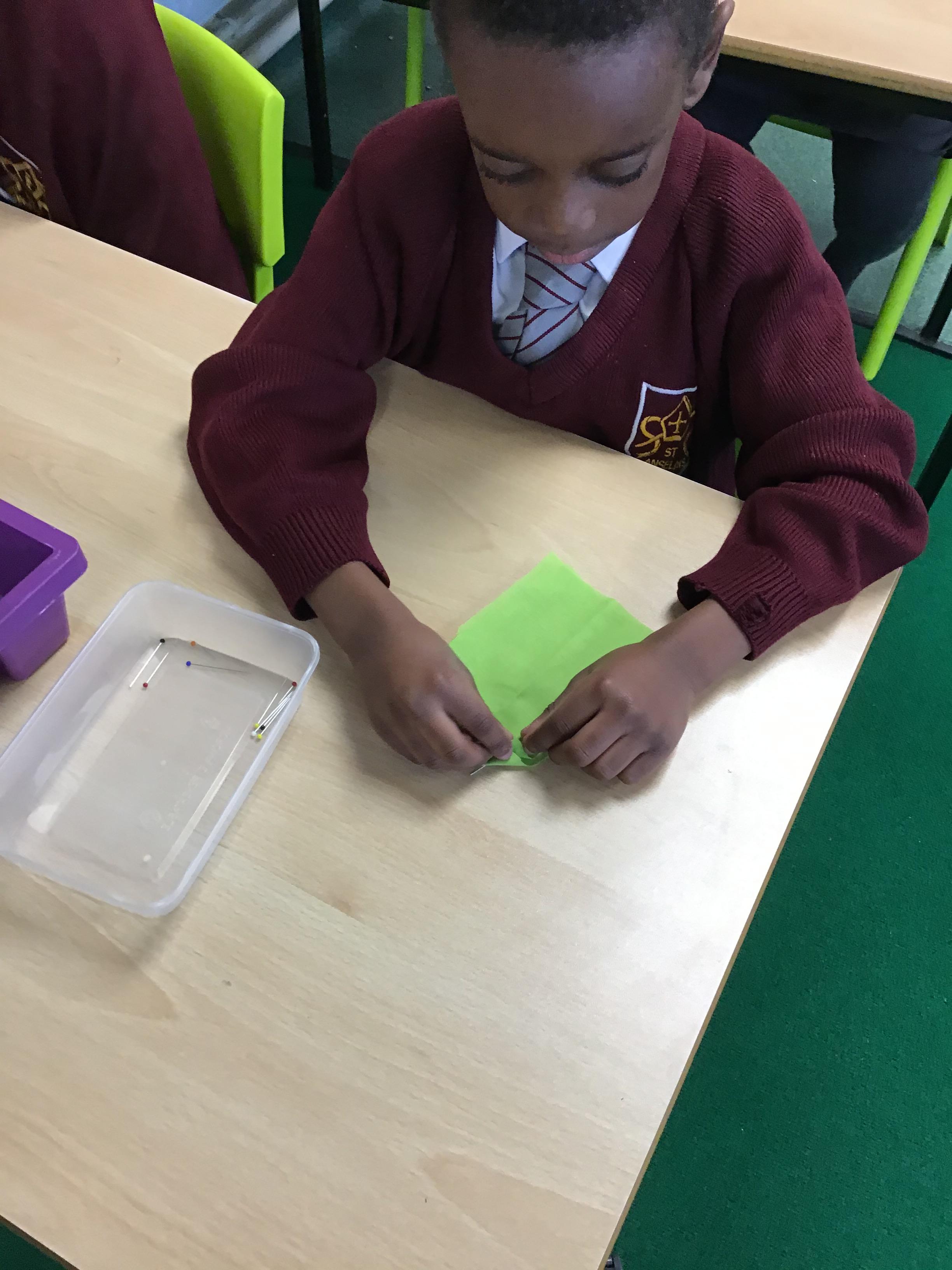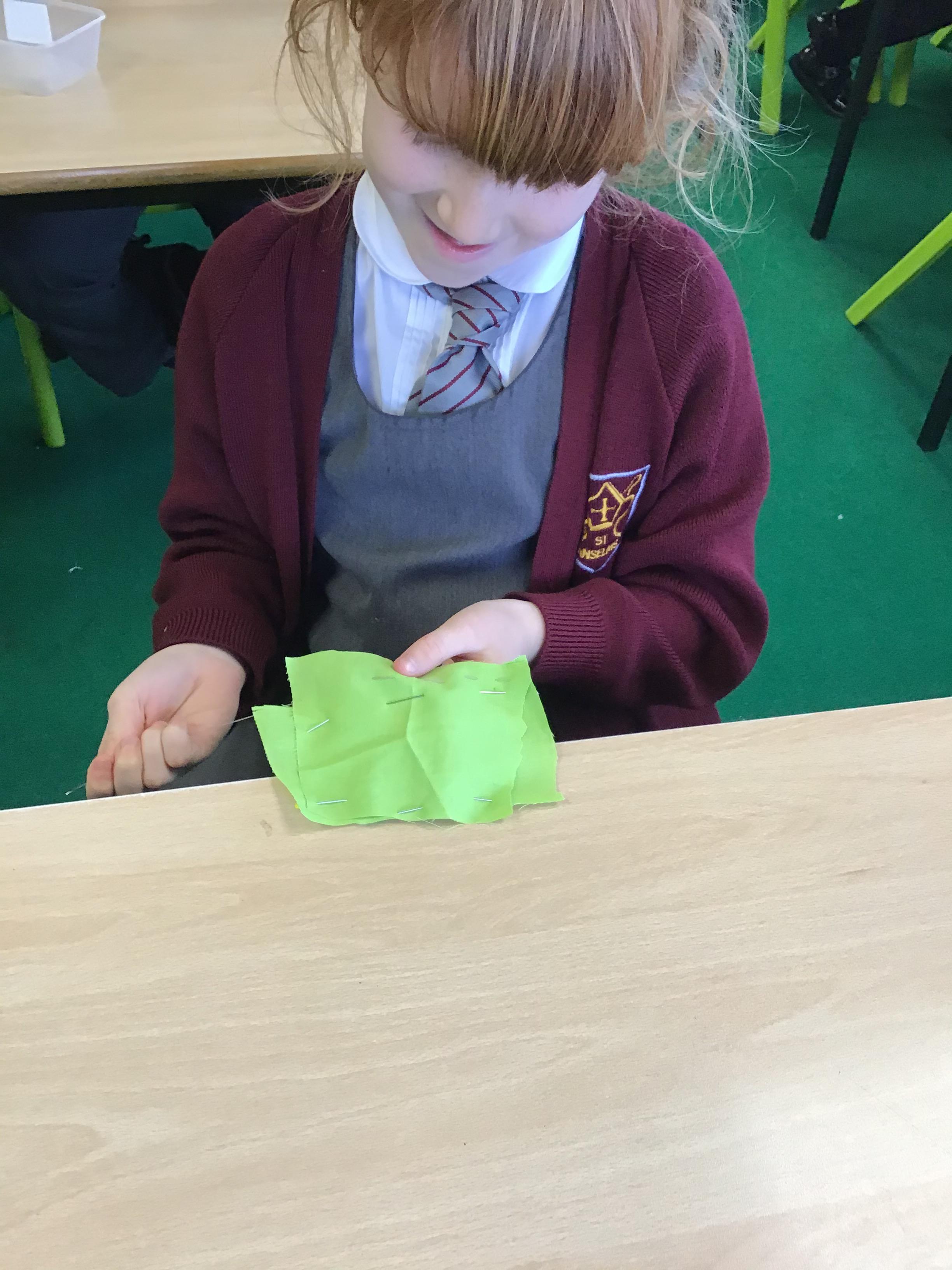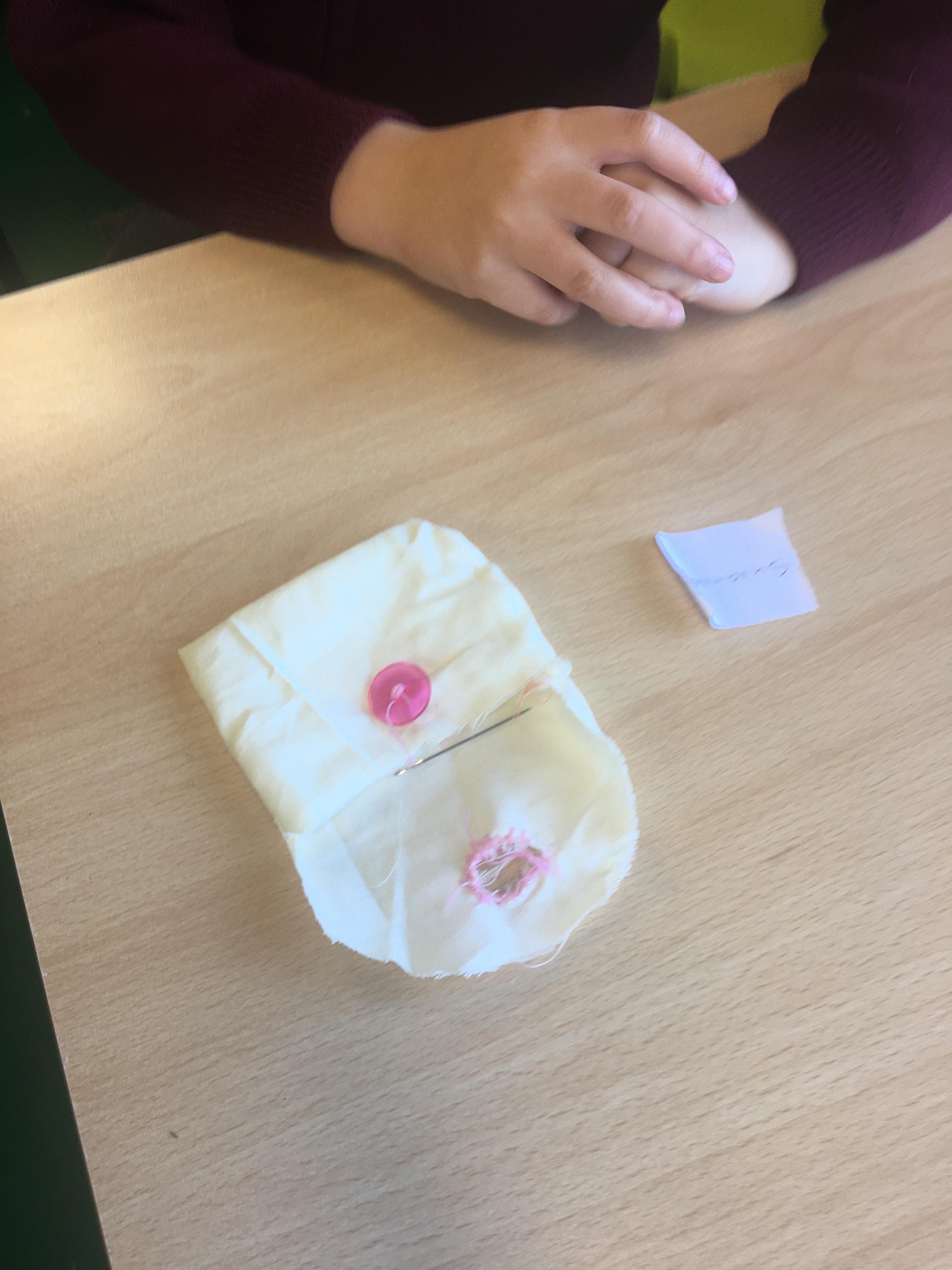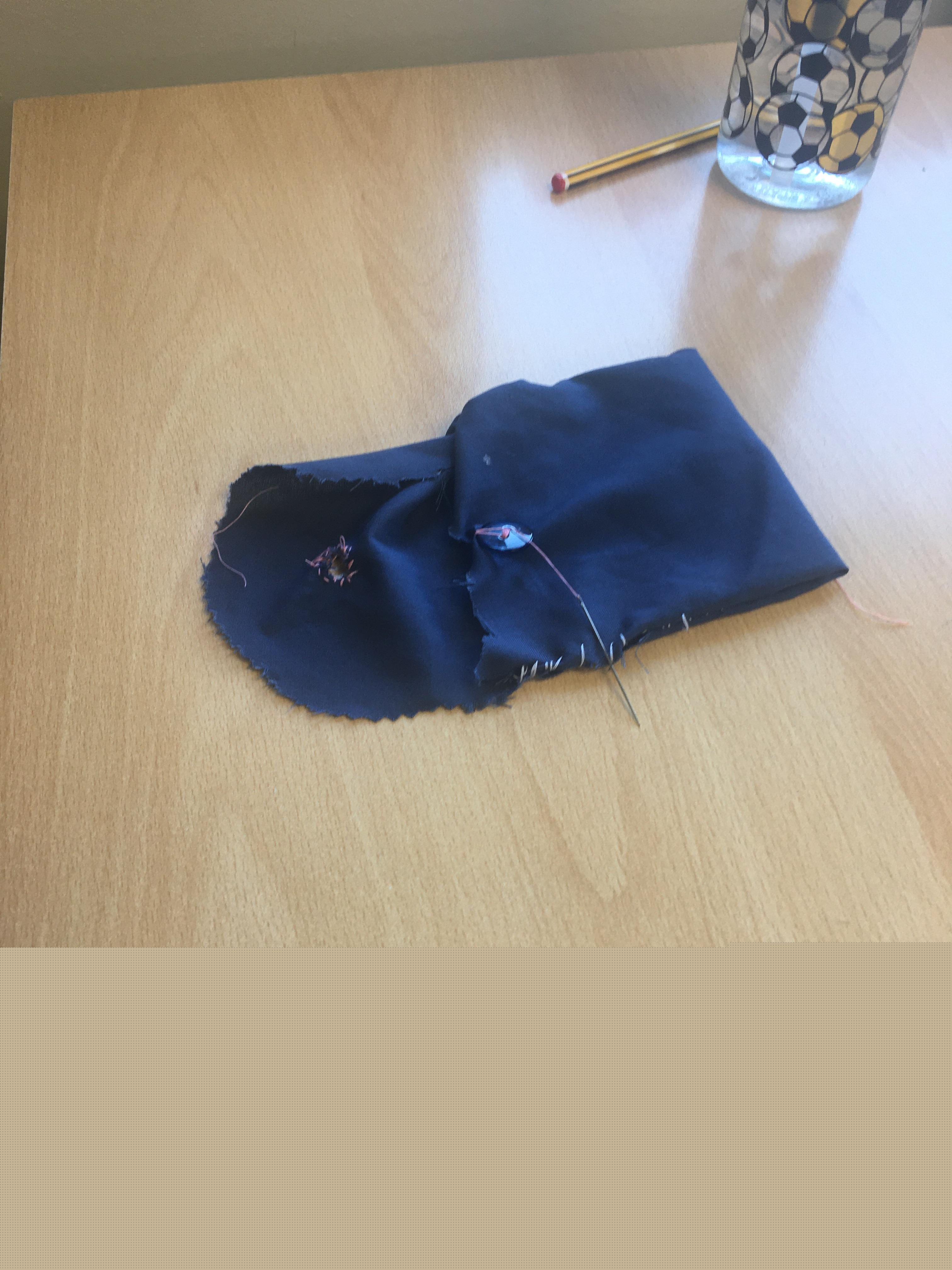 This week in class we were given the task of making a coin purse. A few weeks ago we started learning how to use a needle and thread. We began by using plastic needles and a guide to help us sew. We then moved on to pinning and then sewing 2 pieces of material together.