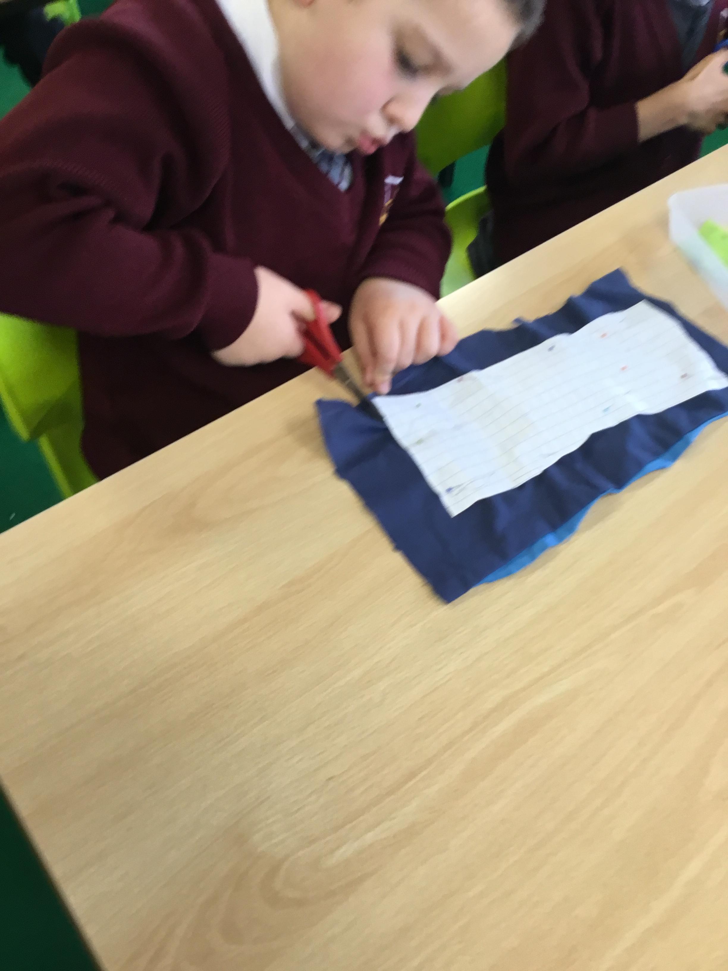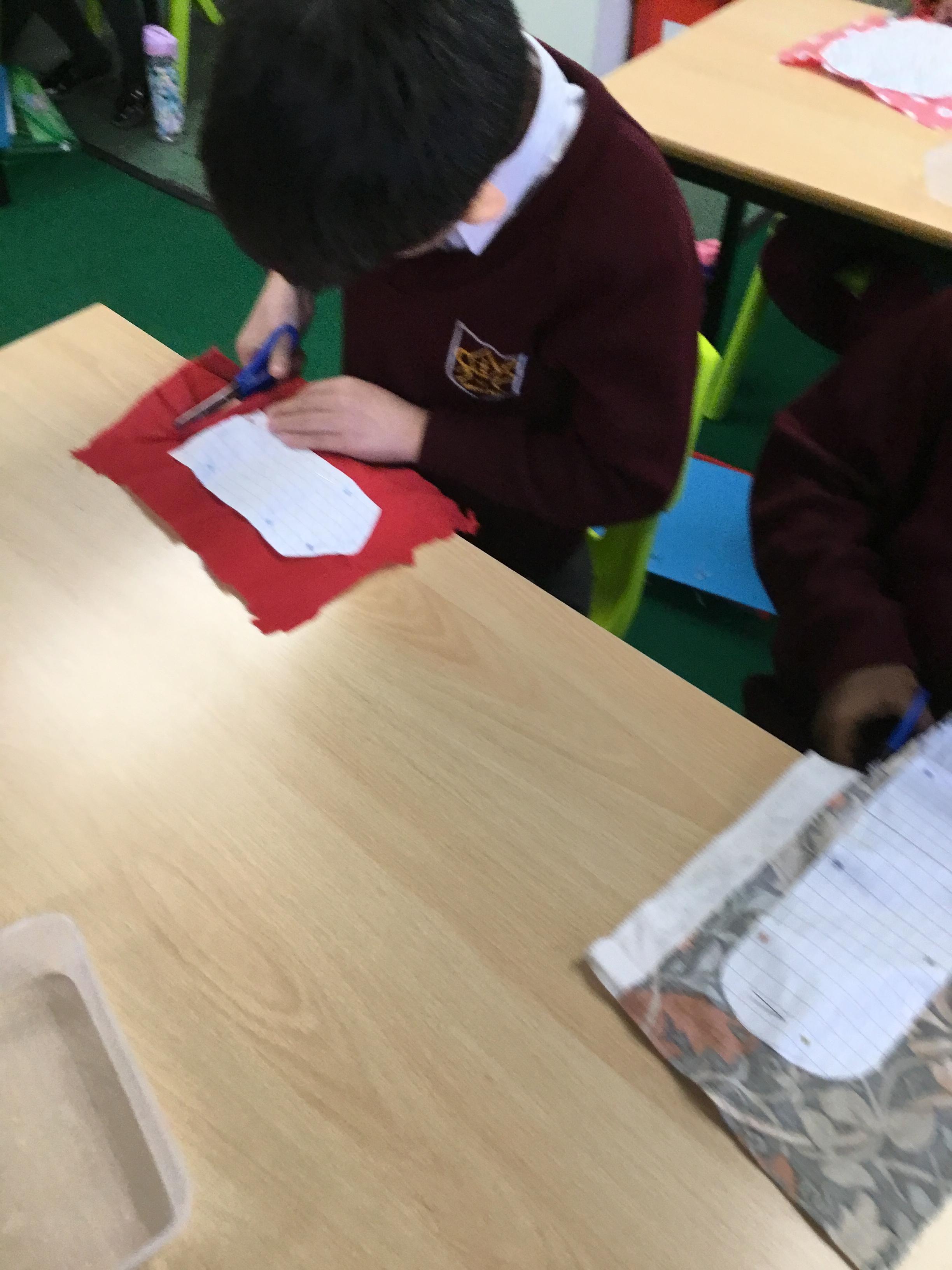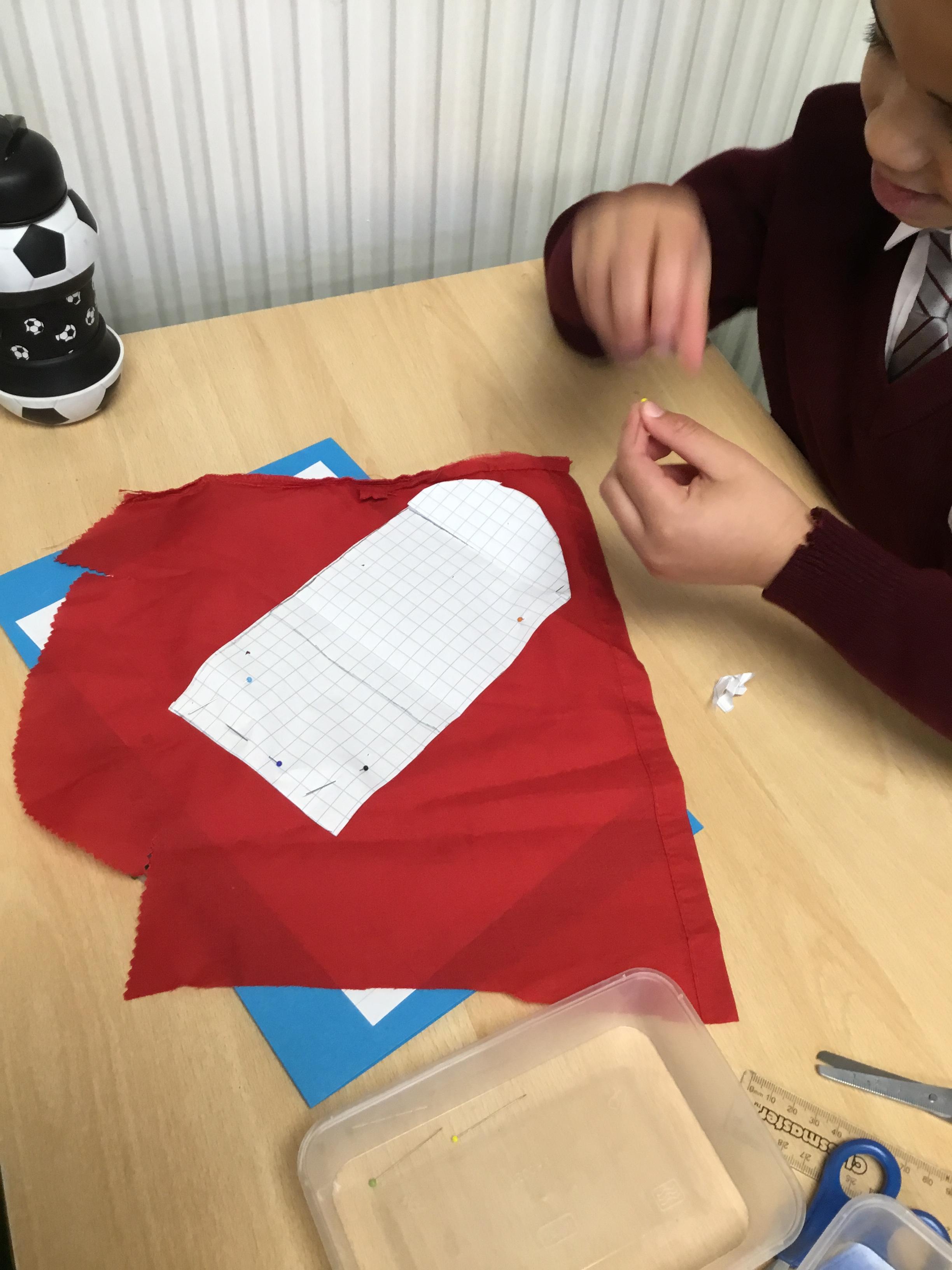 We started by researching different coin purses. Then we looked at suitable designs. We then designed our purses and drew our plans. We had to cut out our plans and pin it safely to our chosen material.