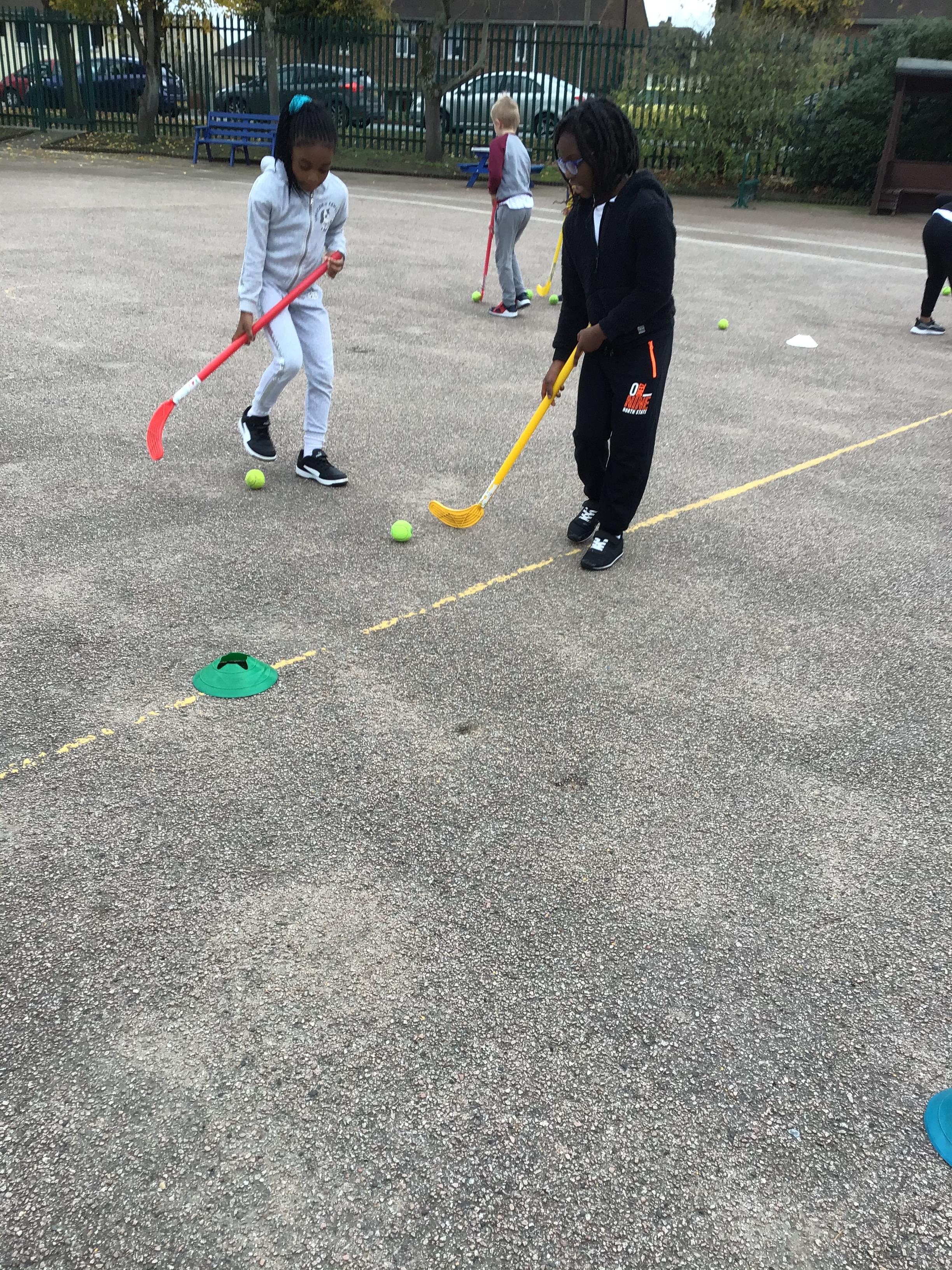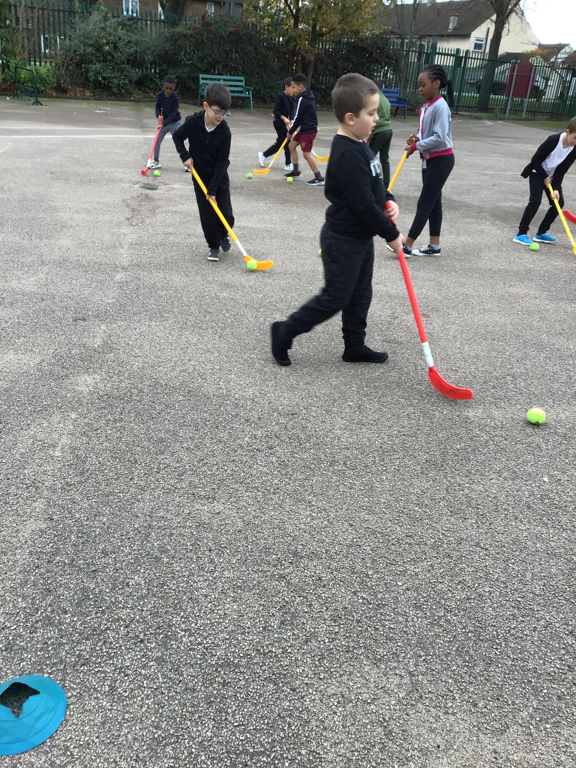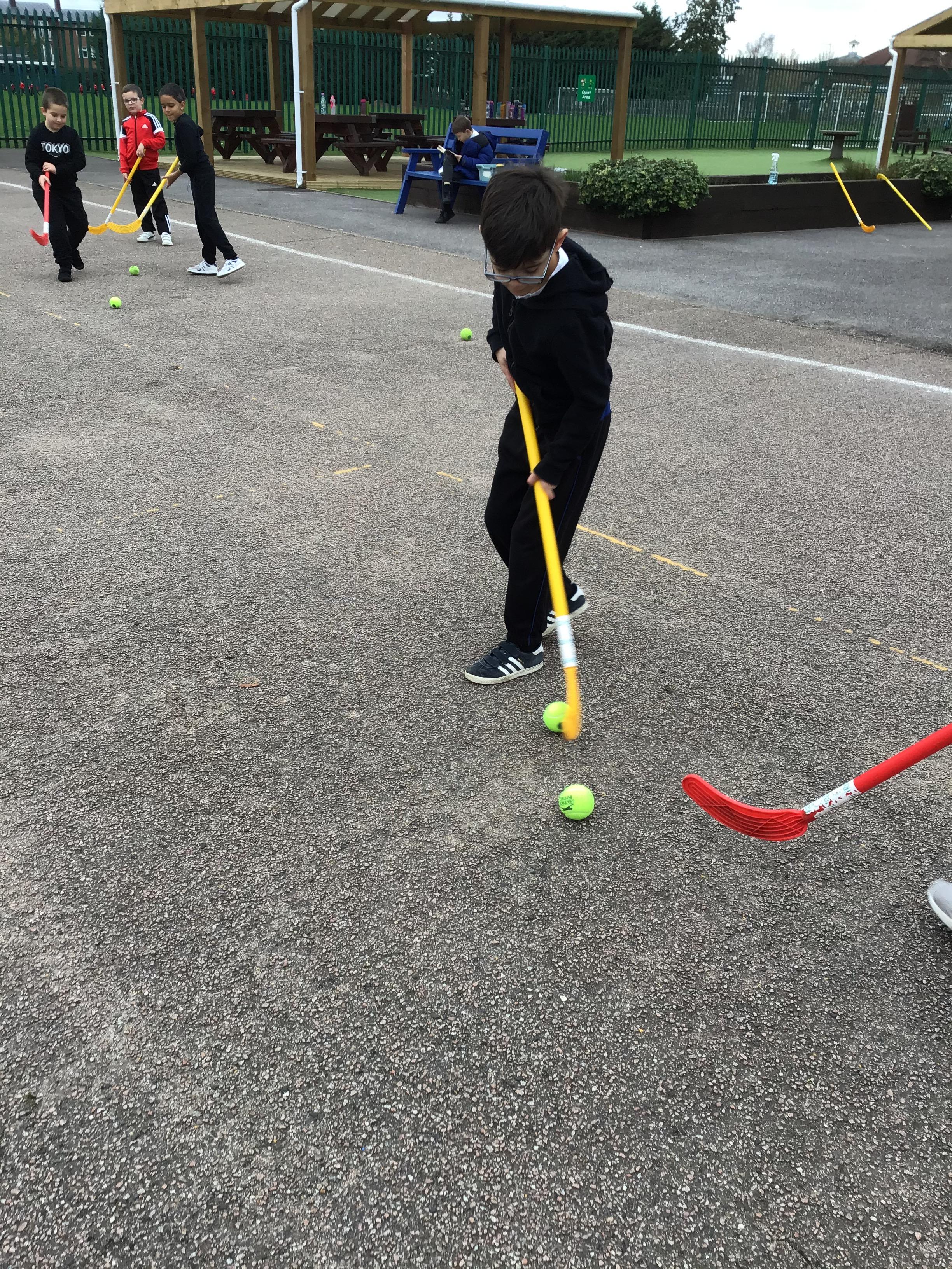 Over the last few weeks we have been learning the different skills to enable us to play a game of hockey. We have learned how to hold the stick, dribble the ball, look for space, how to tackle safely and how to pass the ball to another player. Today we used these skills to help us play a match.