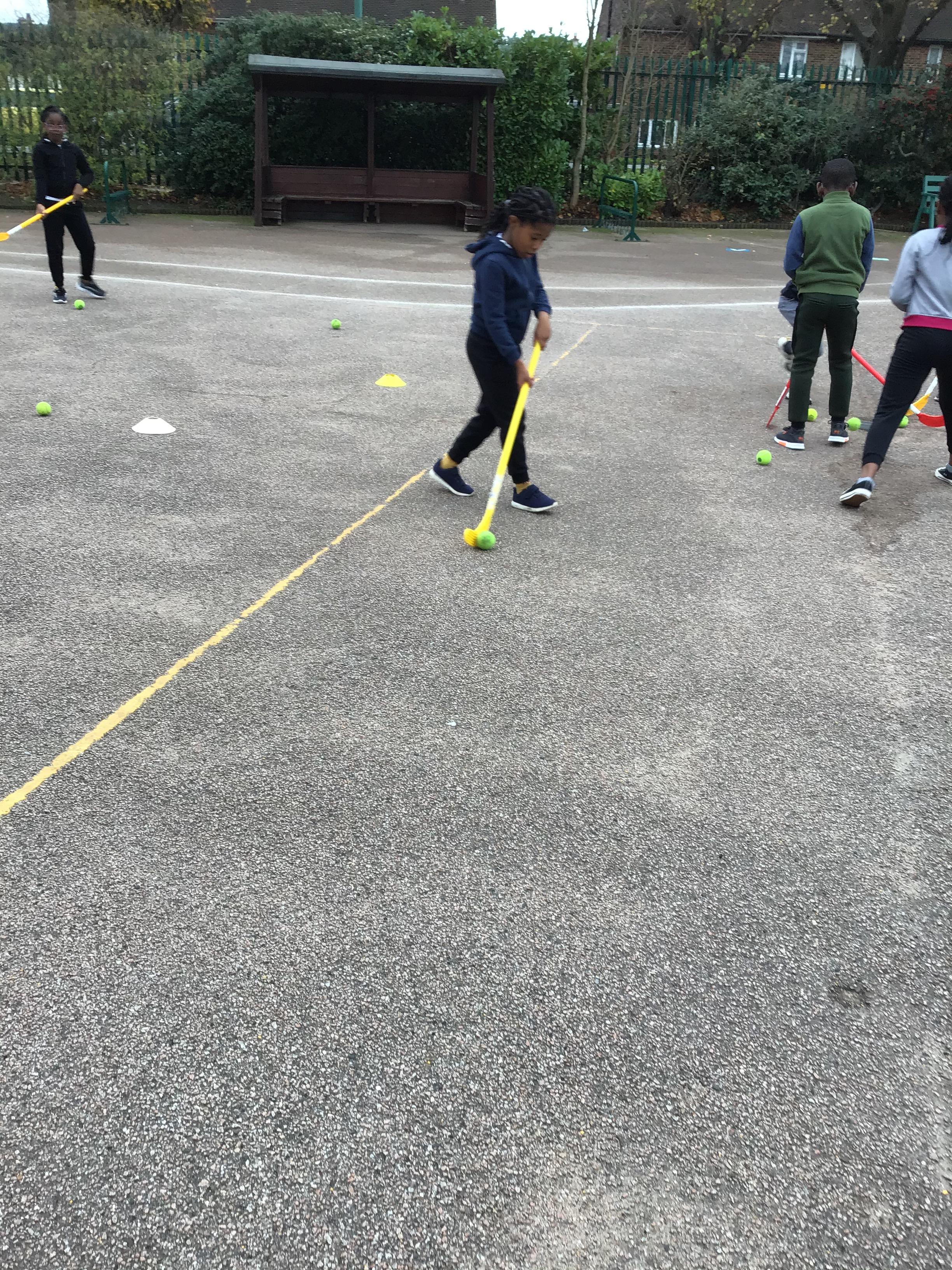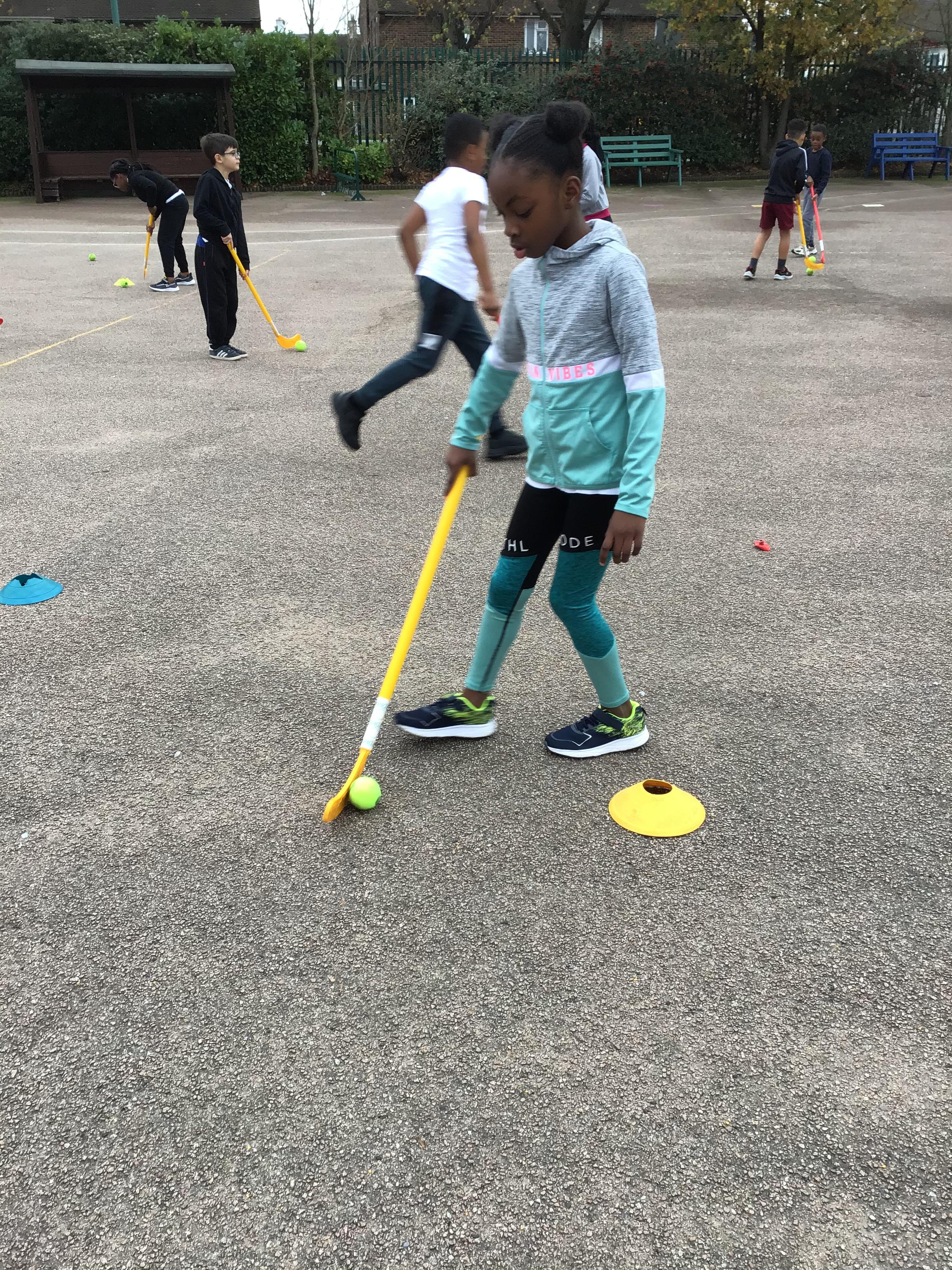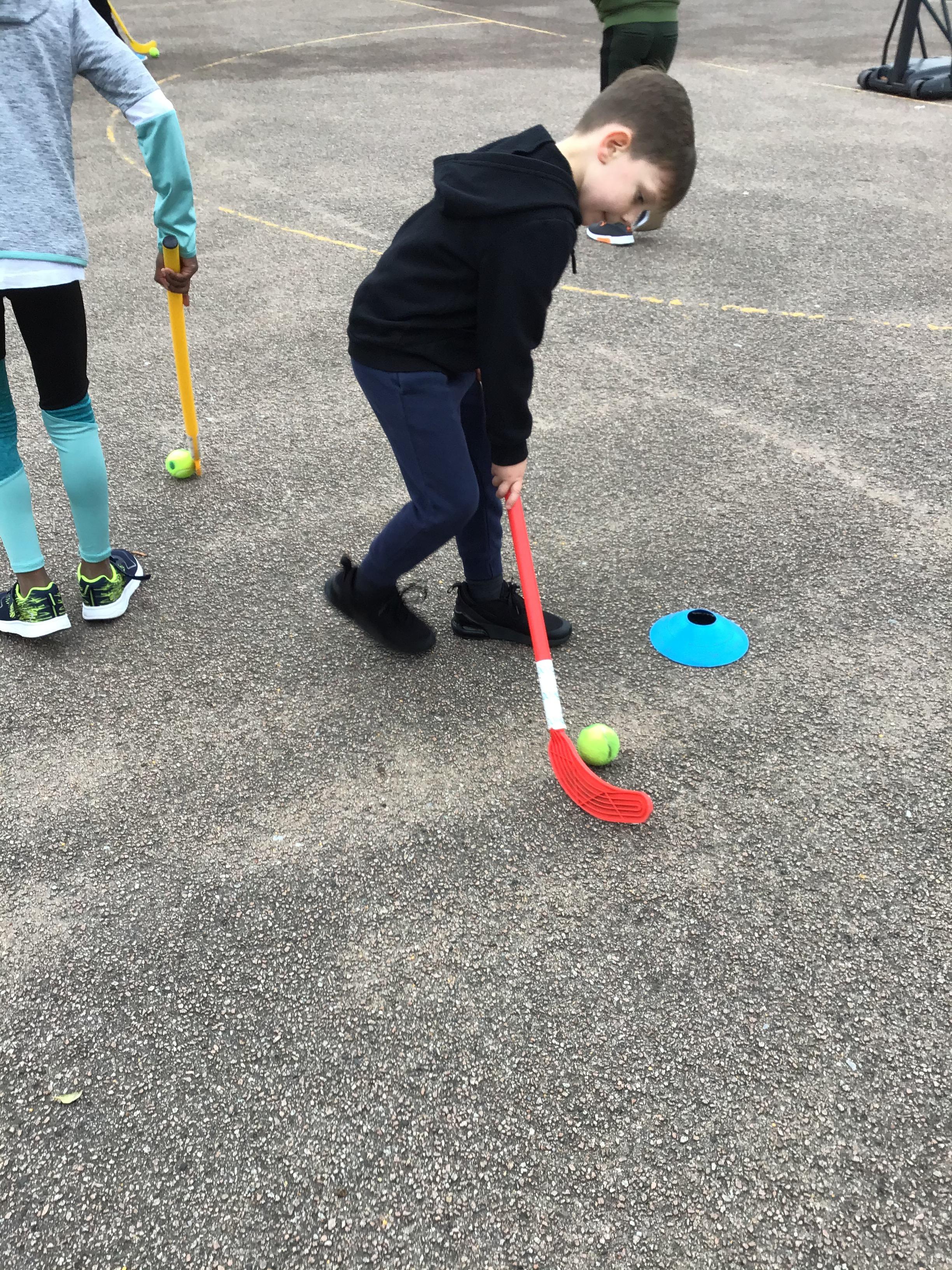 Over the last few weeks we have been learning the different skills to enable us to play a game of hockey. We have learned how to hold the stick, dribble the ball, look for space, how to tackle safely and how to pass the ball to another player. Today we used these skills to help us play a match.