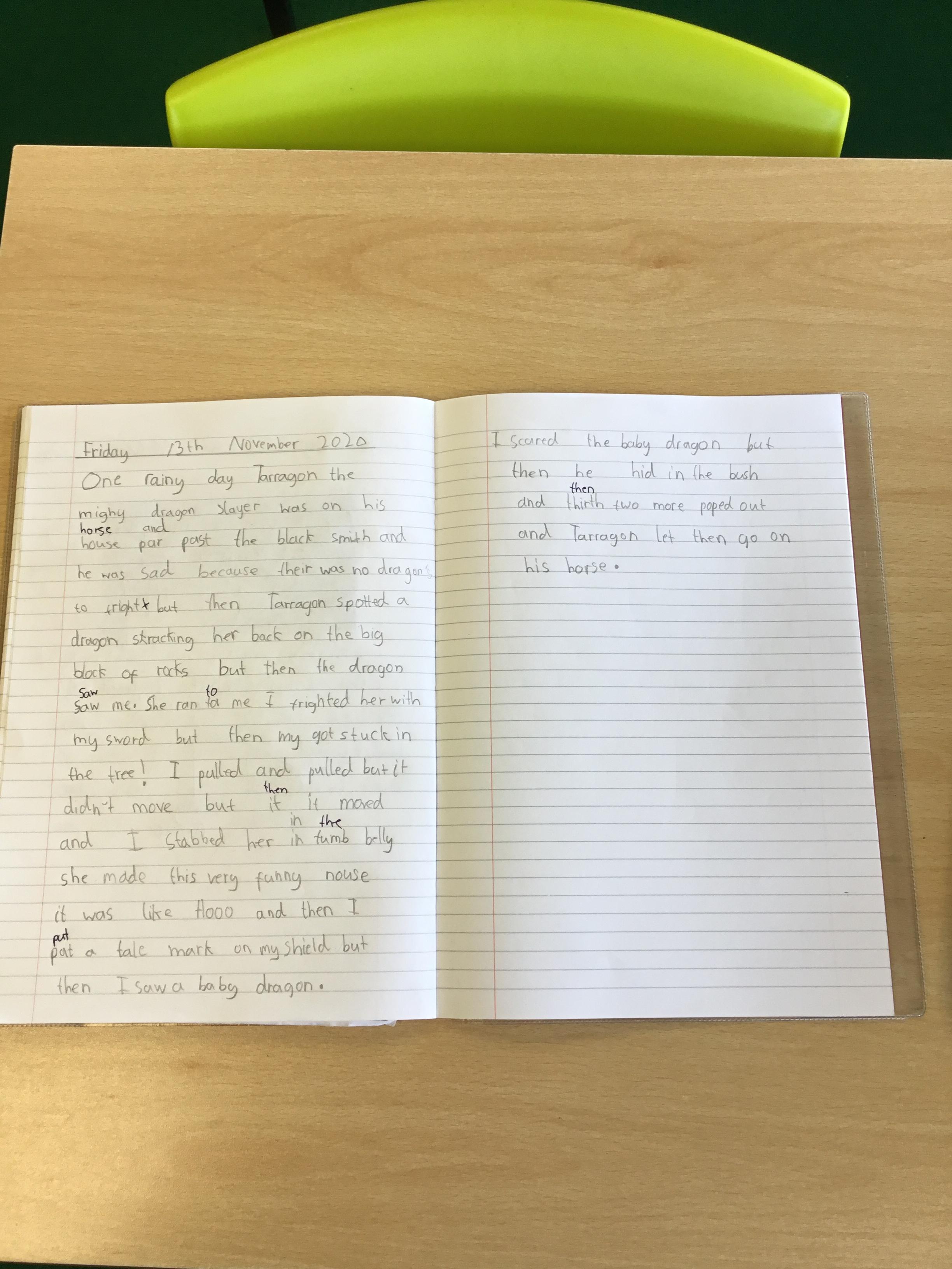 This week in English we have been exploring an animated short story called 'The Dragon Slayer'. The story ends with the Dragon Slayer taking pity on the 3 baby dragons. We had to think about what happened next and write our own stories.