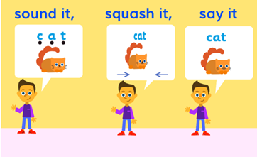 Phonics Shed uses the blending and segmenting approach to teach children to decode words. Children are taught to blend sounds together to make words by using the ‘Sound it, Squash it, Say it’ technique. Then to segment words into sounds they are taught to ‘Say it, Stretch it, Sound it’.