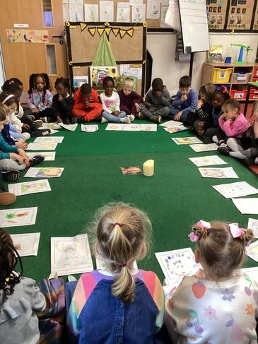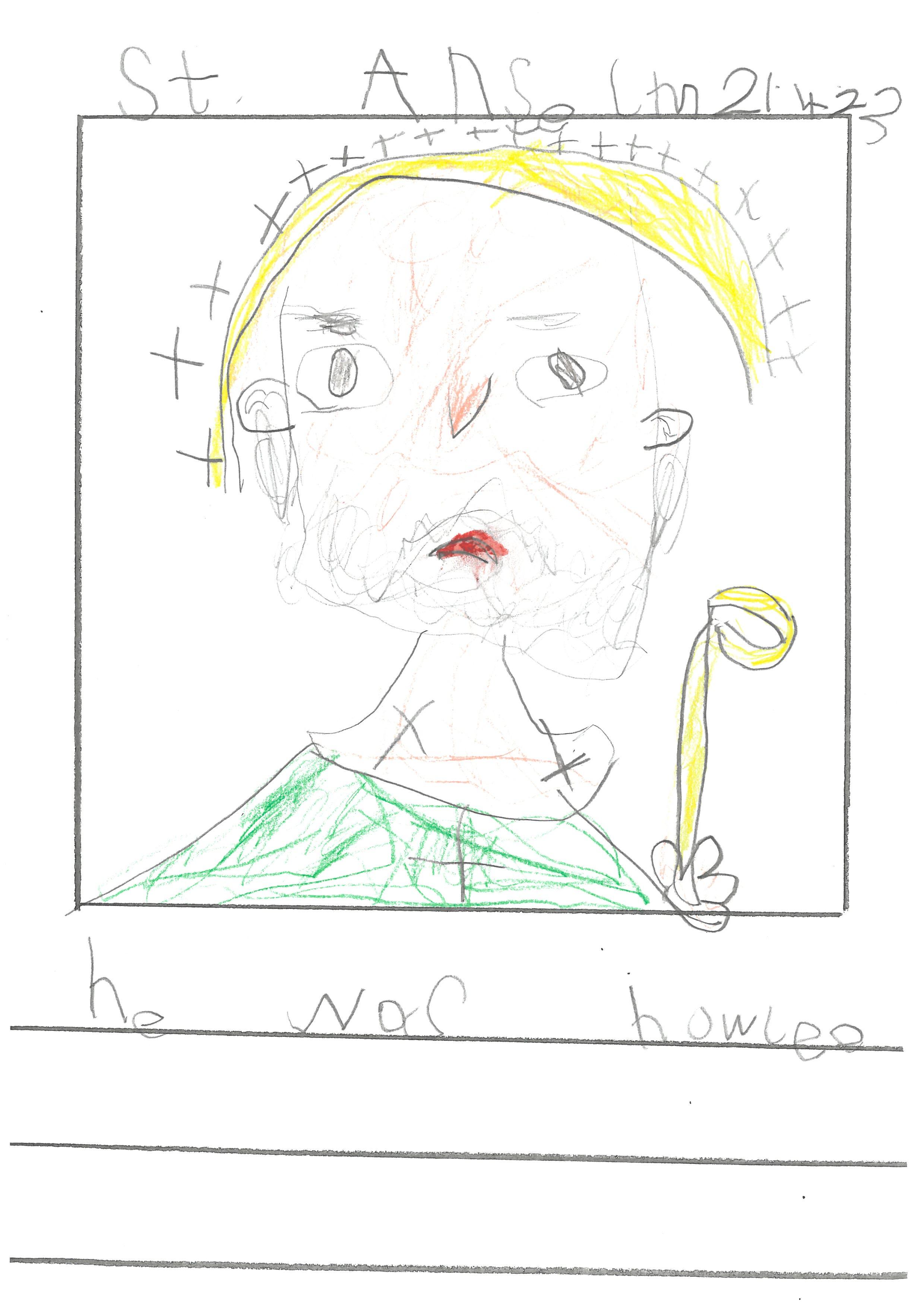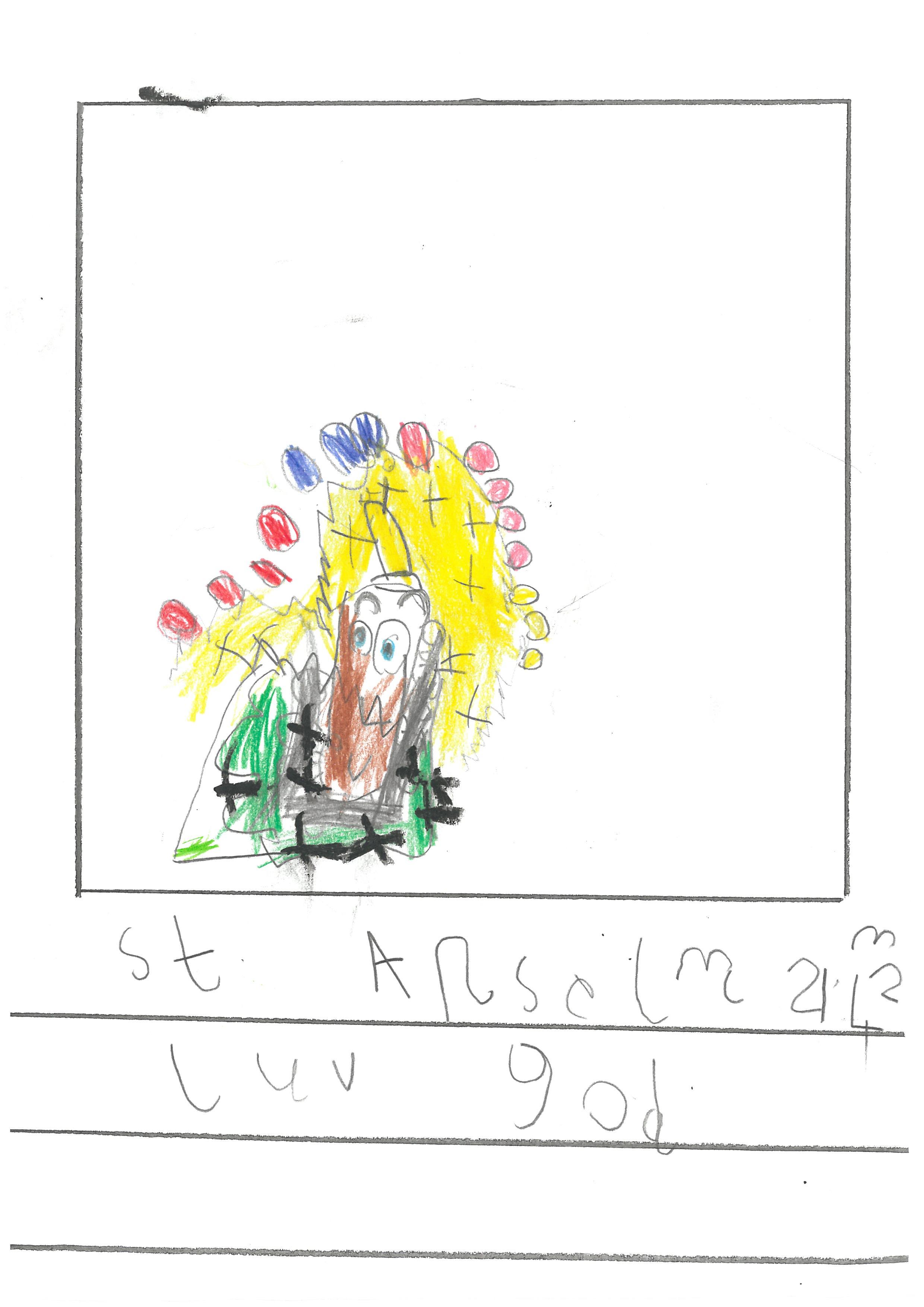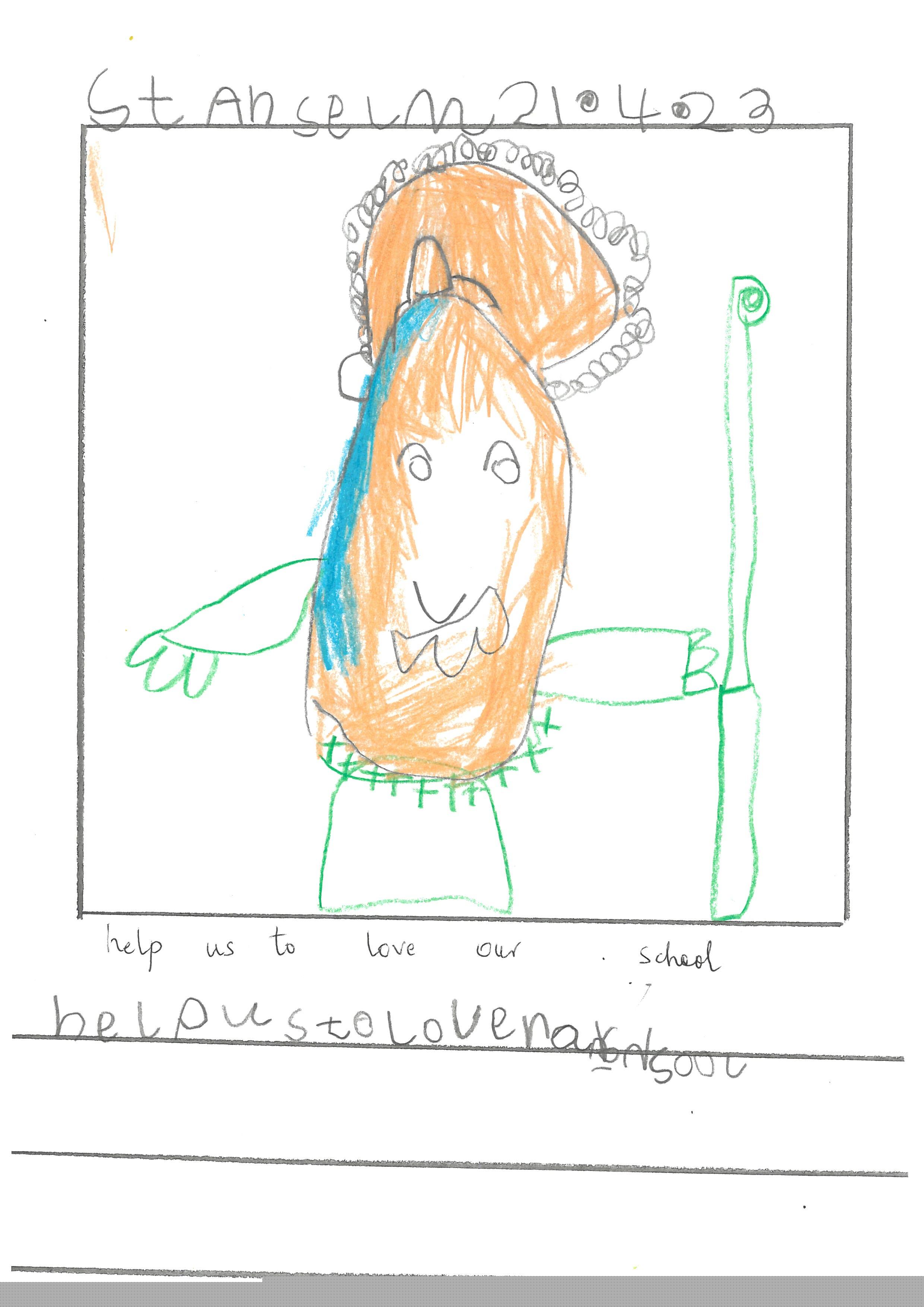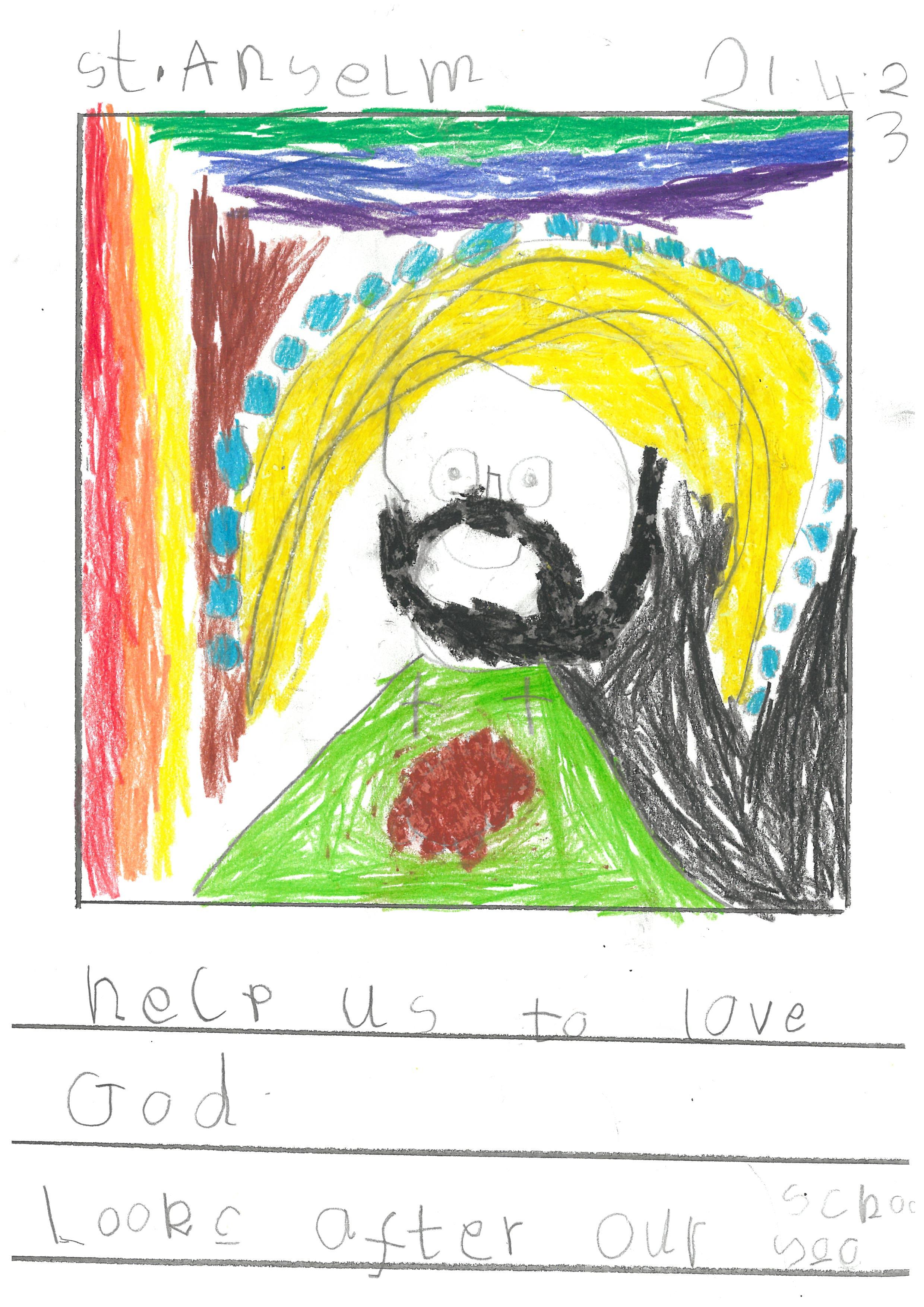 Alongside the pictures they have drawn of St Anselm, the children in Reception class have written something they remember about him or a prayer for him. As part of the celebrations, they also said their own prayer to St Anselm.