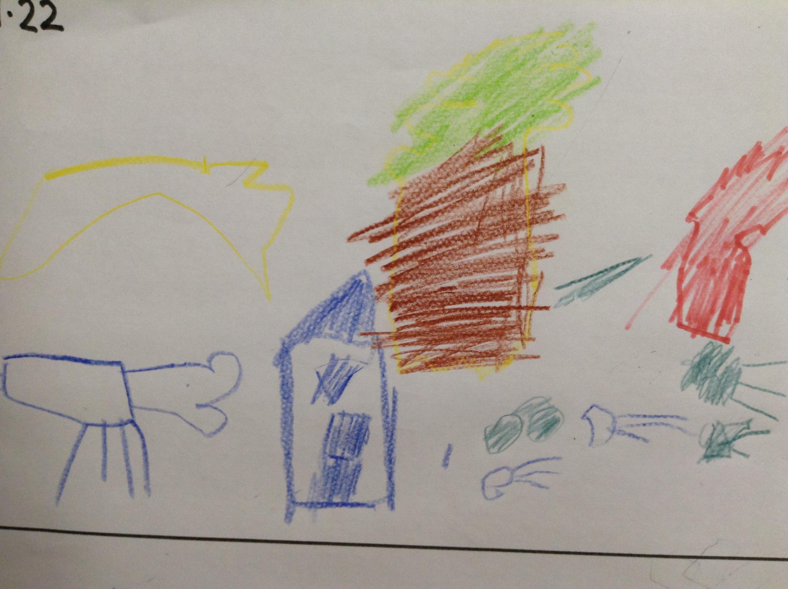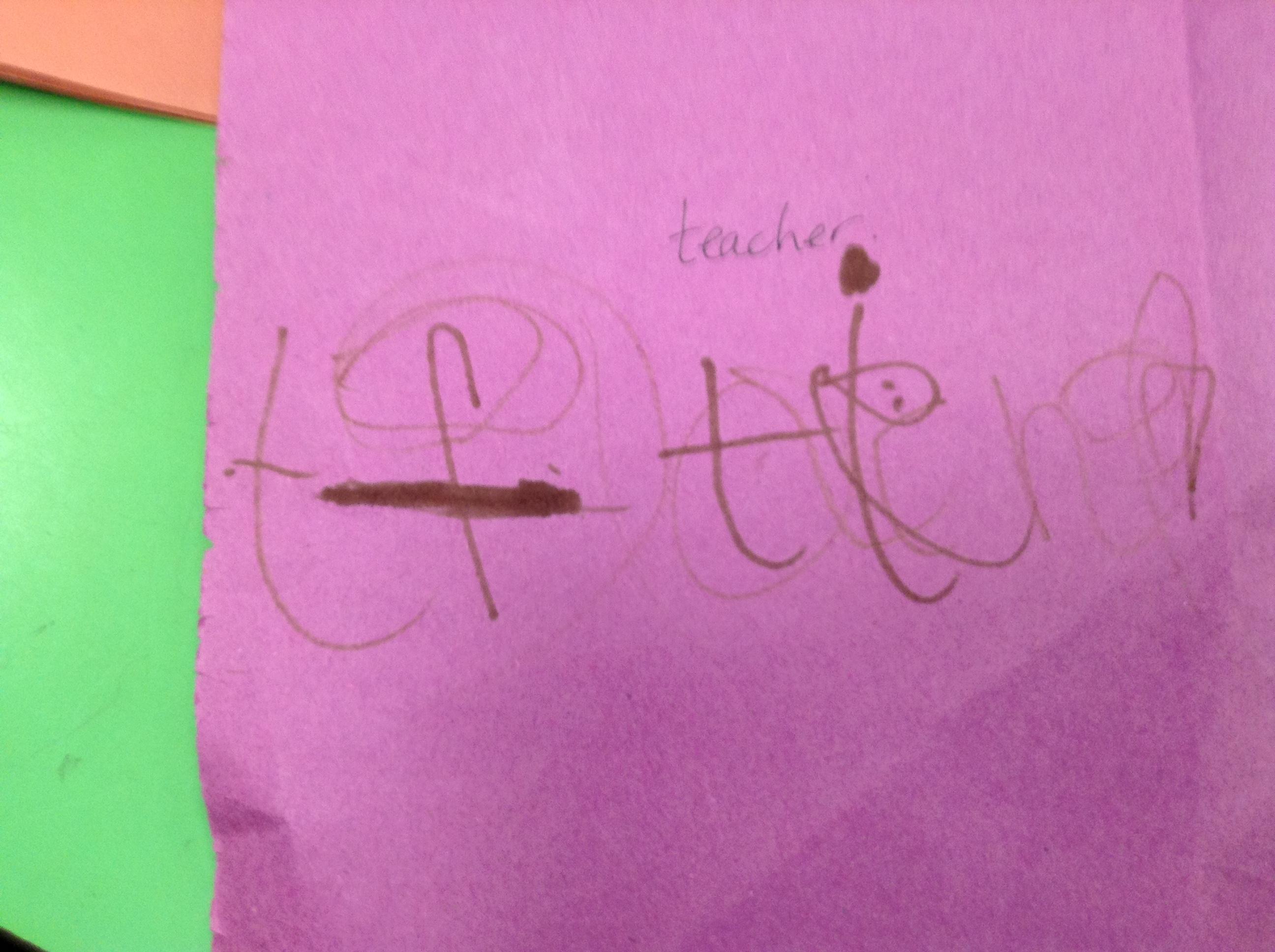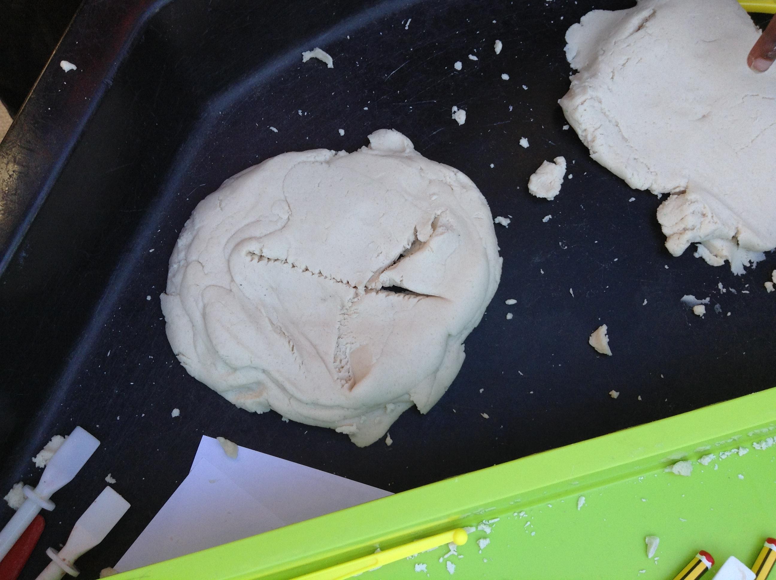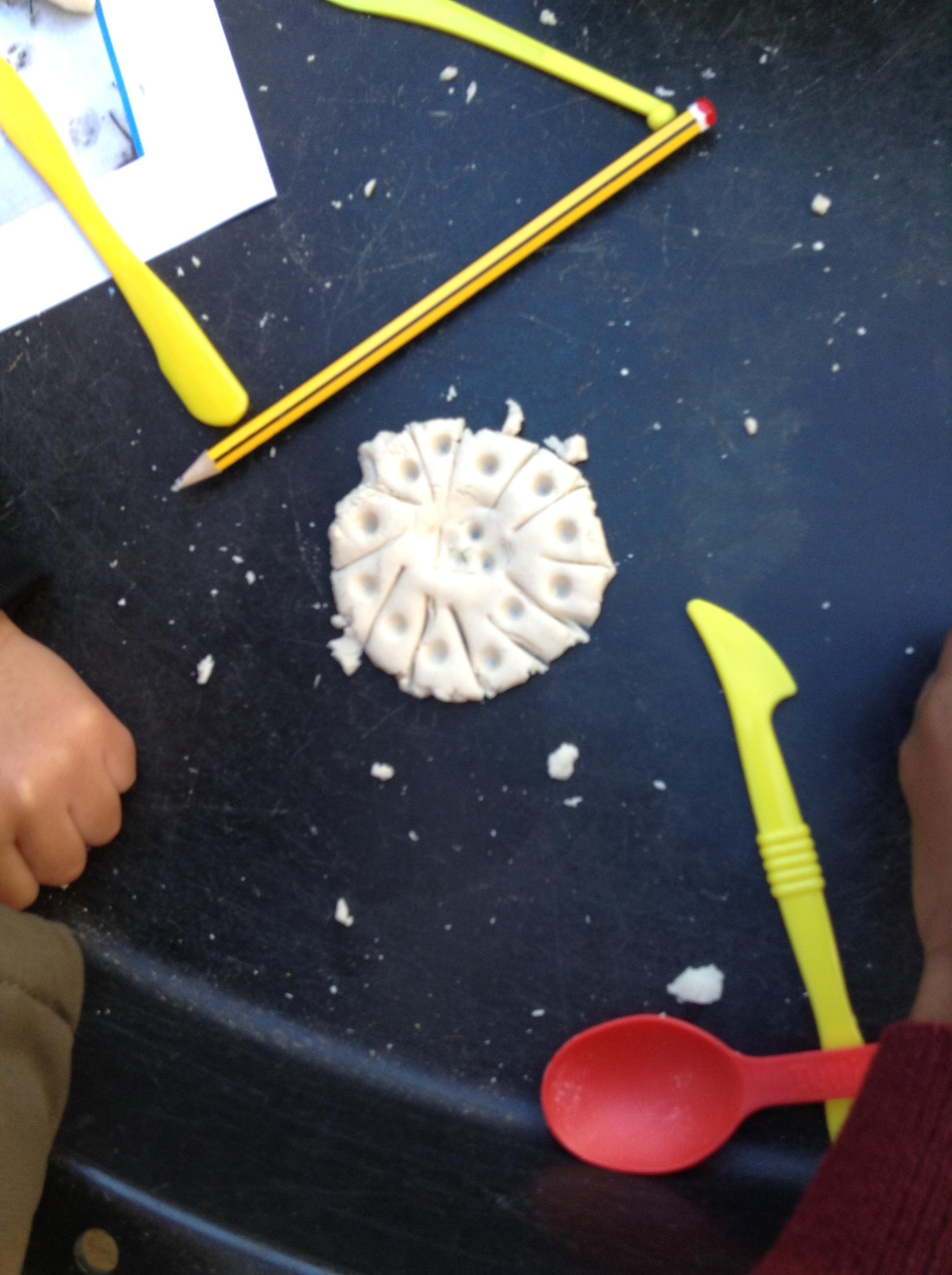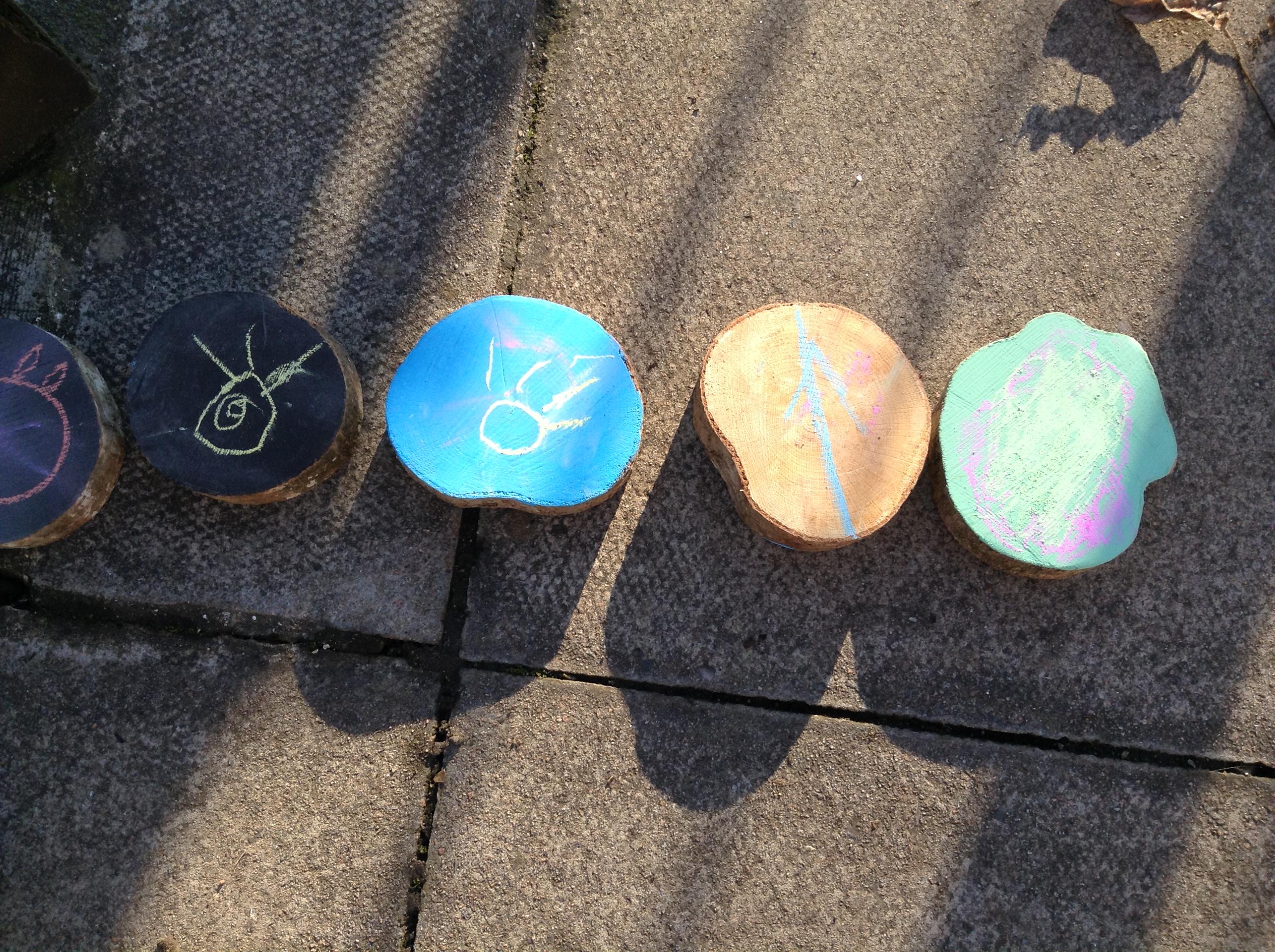 In the story ‘Lost in the Snow’, Ollie, the pup, got lost. We predicted how he might get back to his mum and drew pictures and did some writing to show how. We also made some animal footprints from playdough and using chalk.