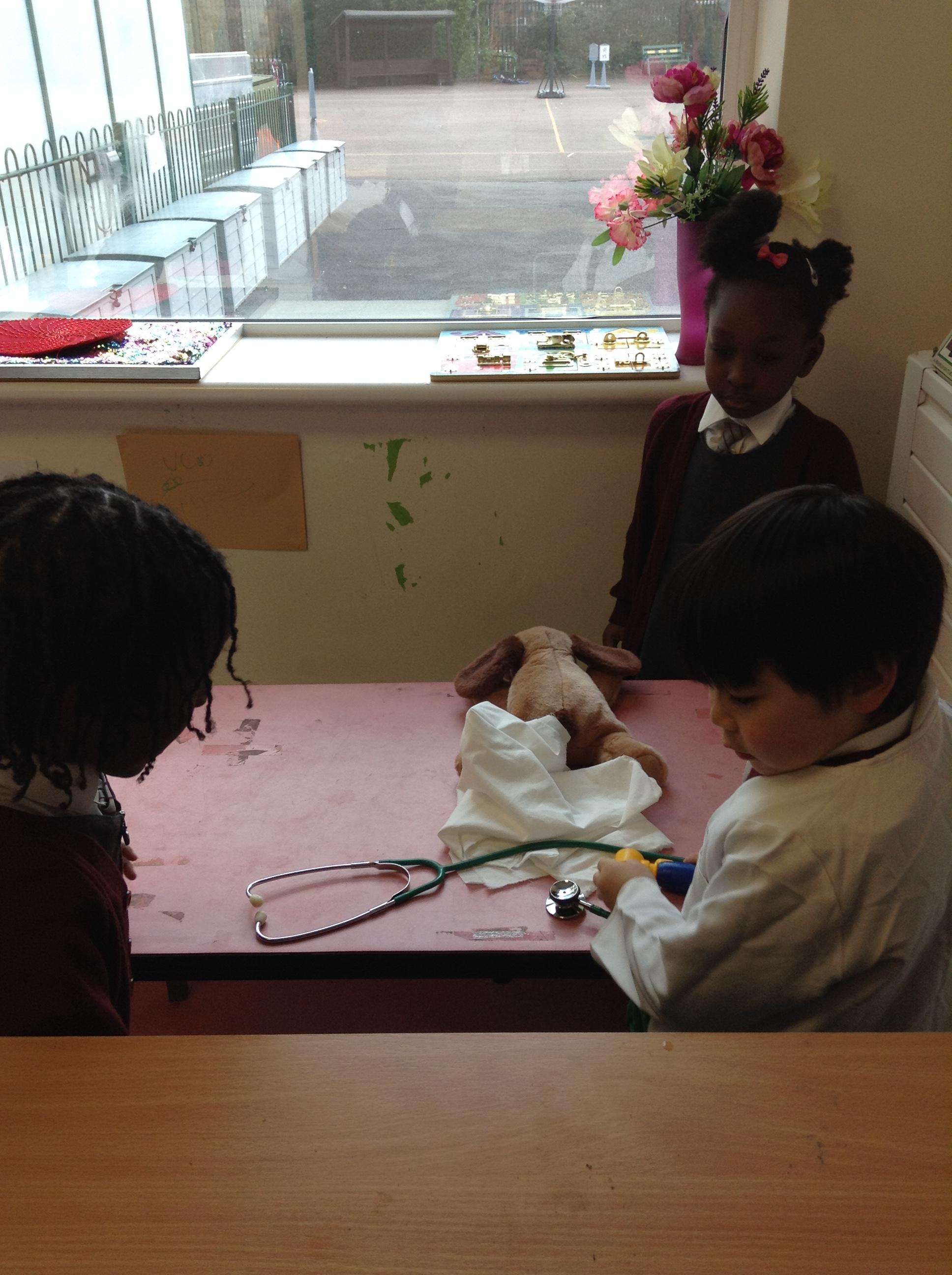 We have set up a vet's surgery. There are lots of sick animals to help.