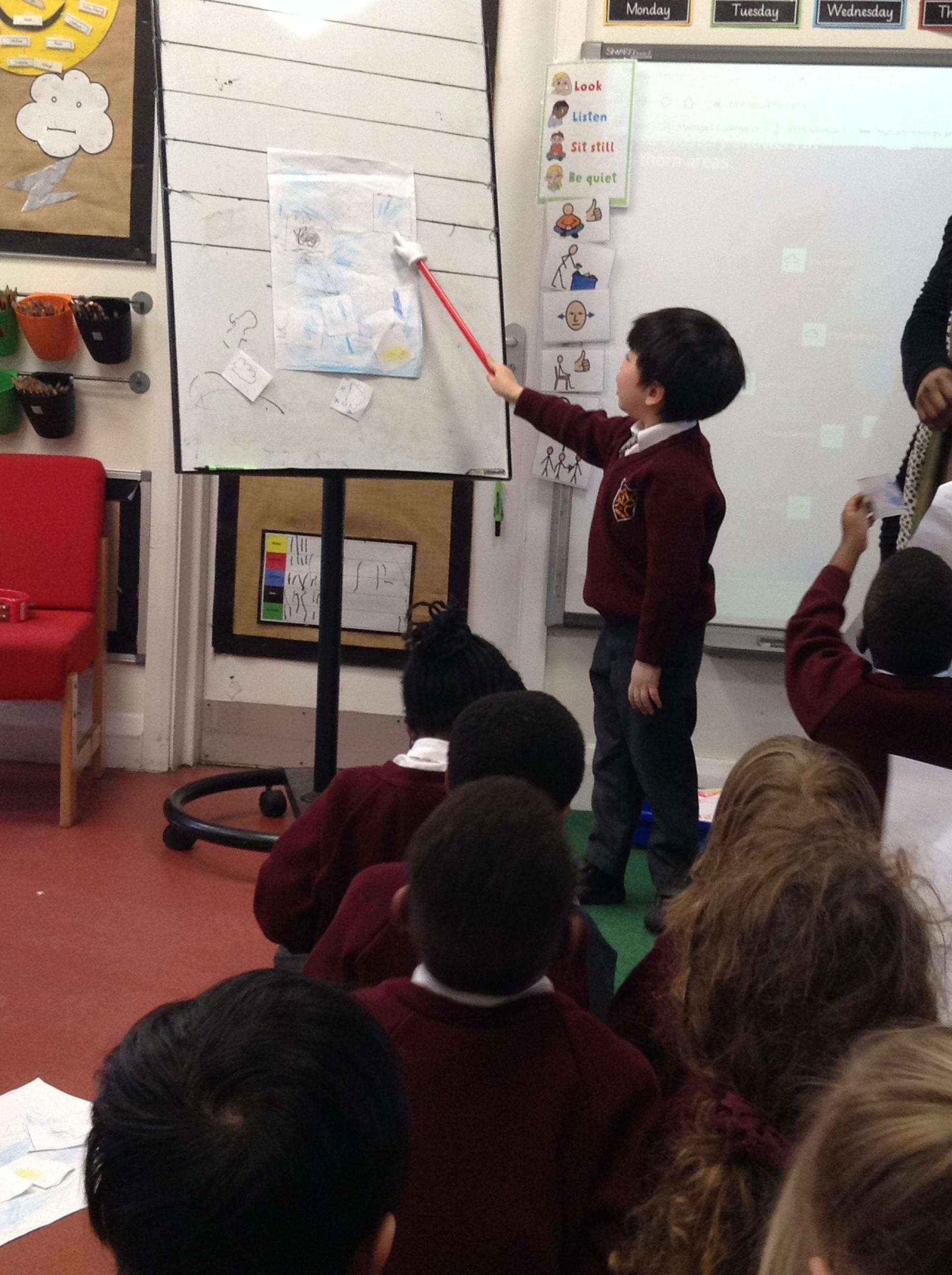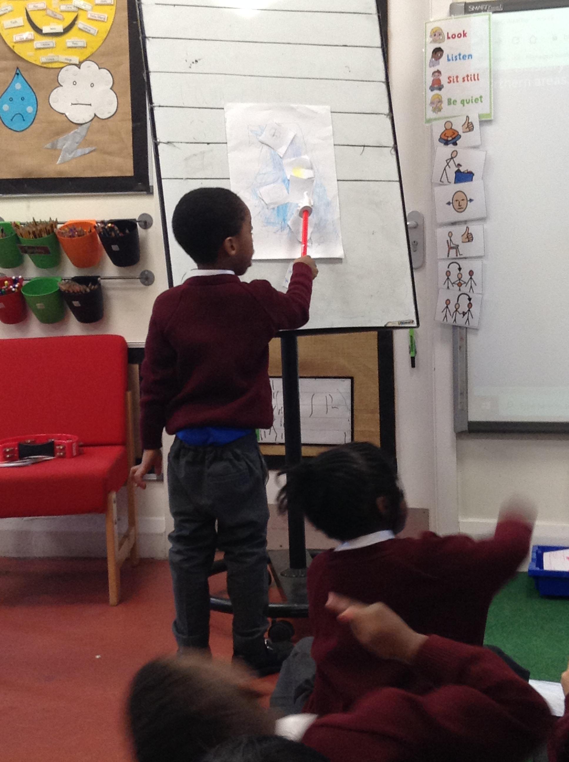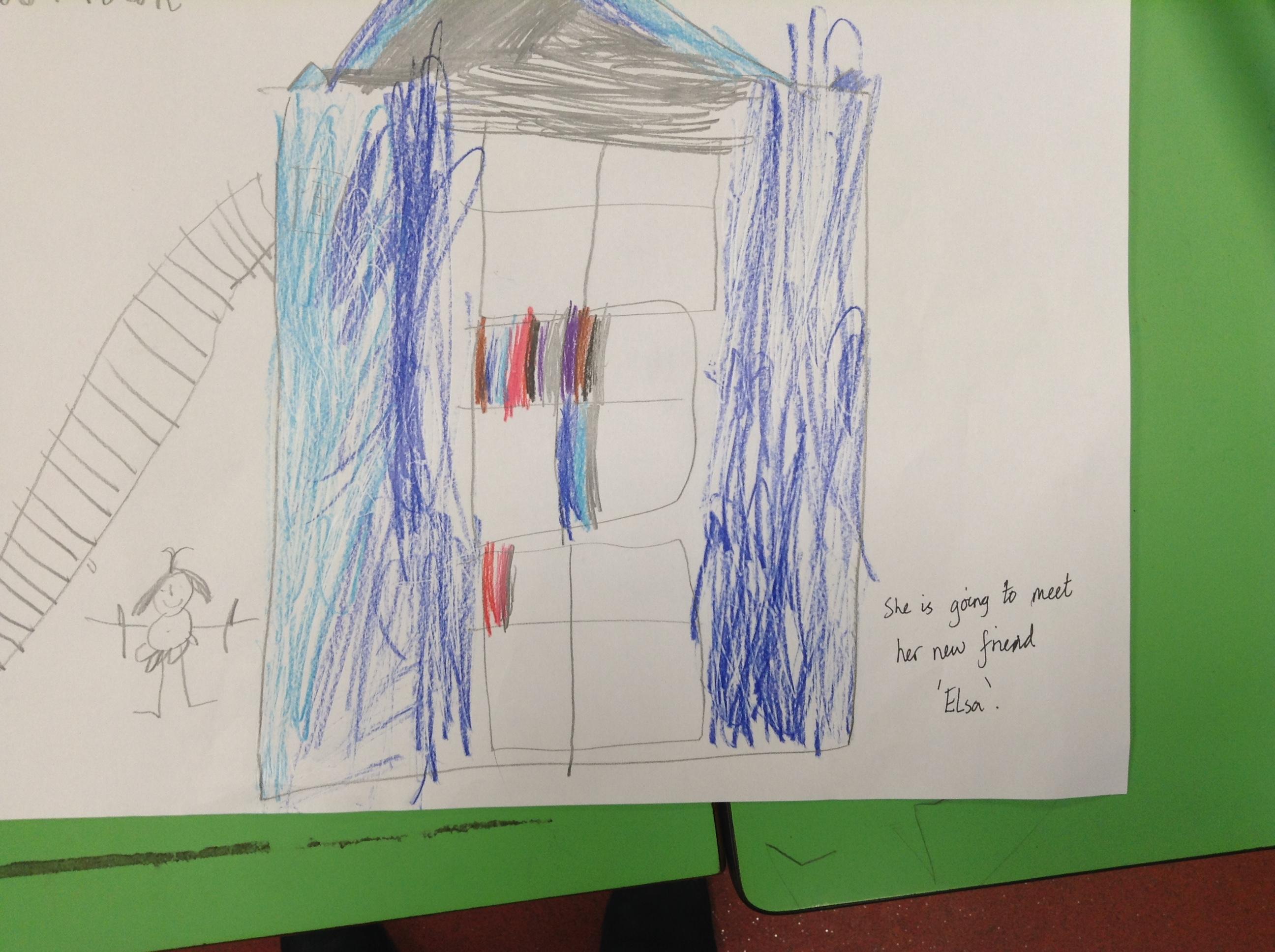 Last week we learnt to tell a simple version of the story of ‘the Snow Queen.’ We thought about what her palace might be like and drew pictures or built models to show our ideas.