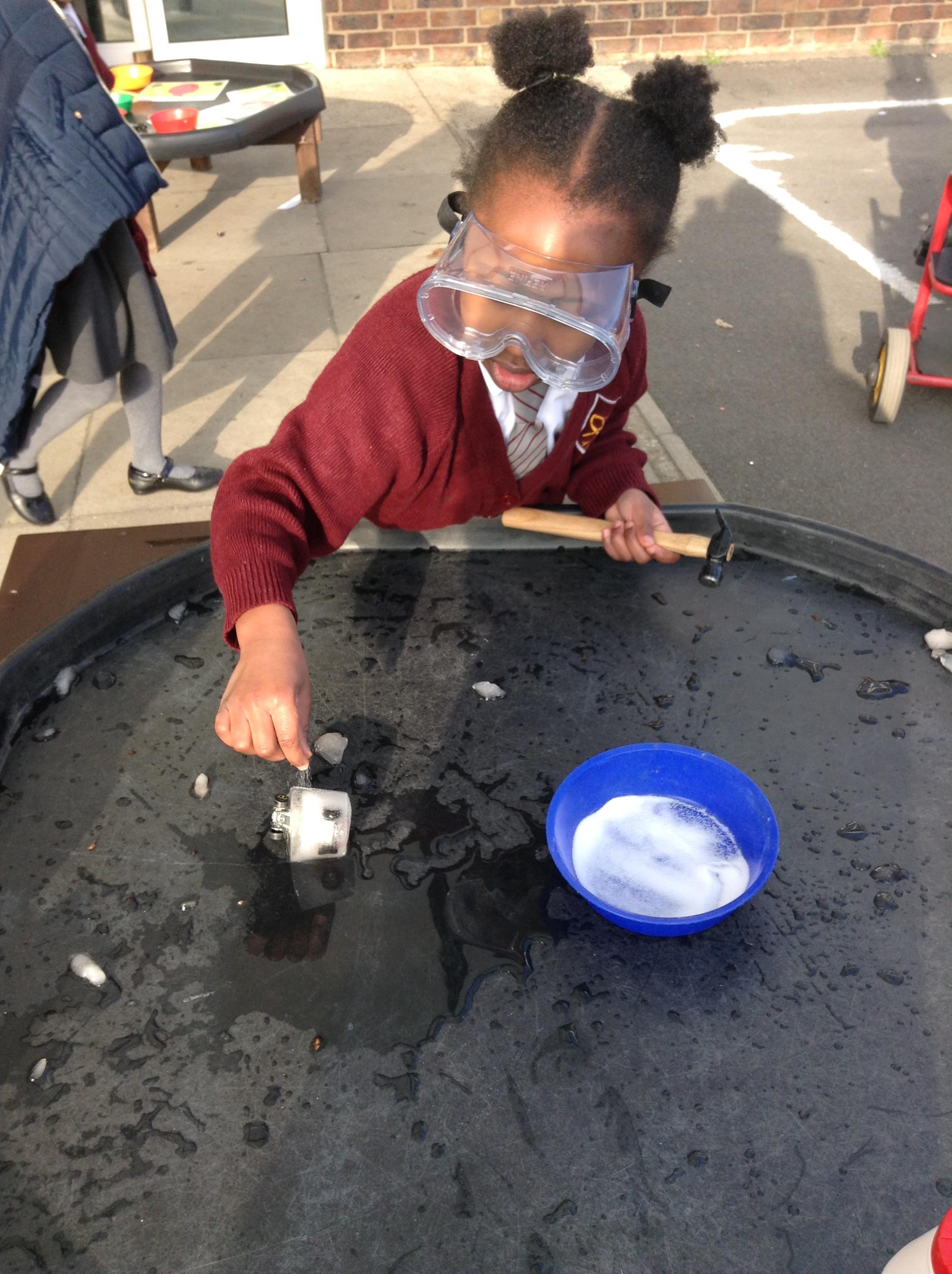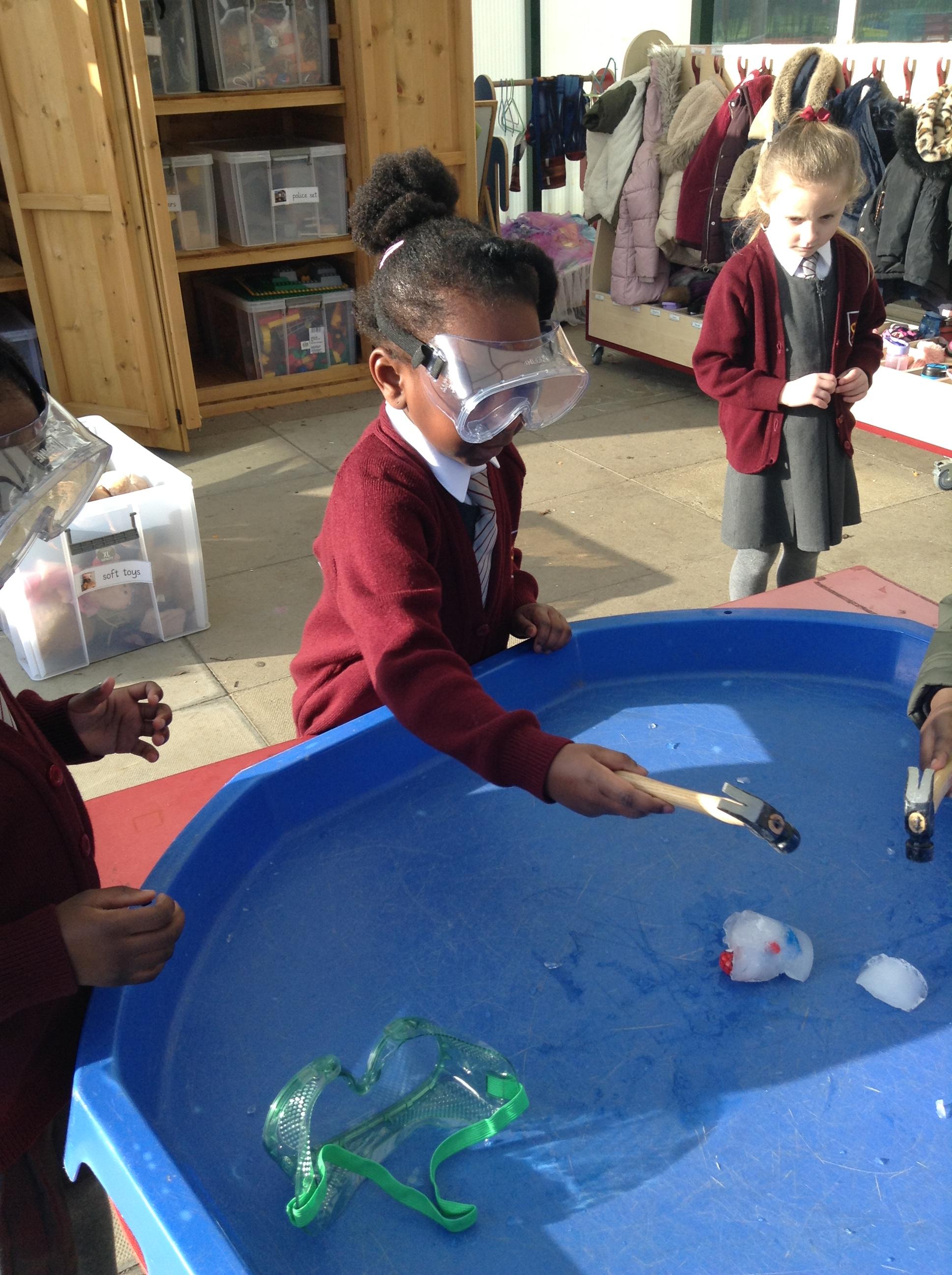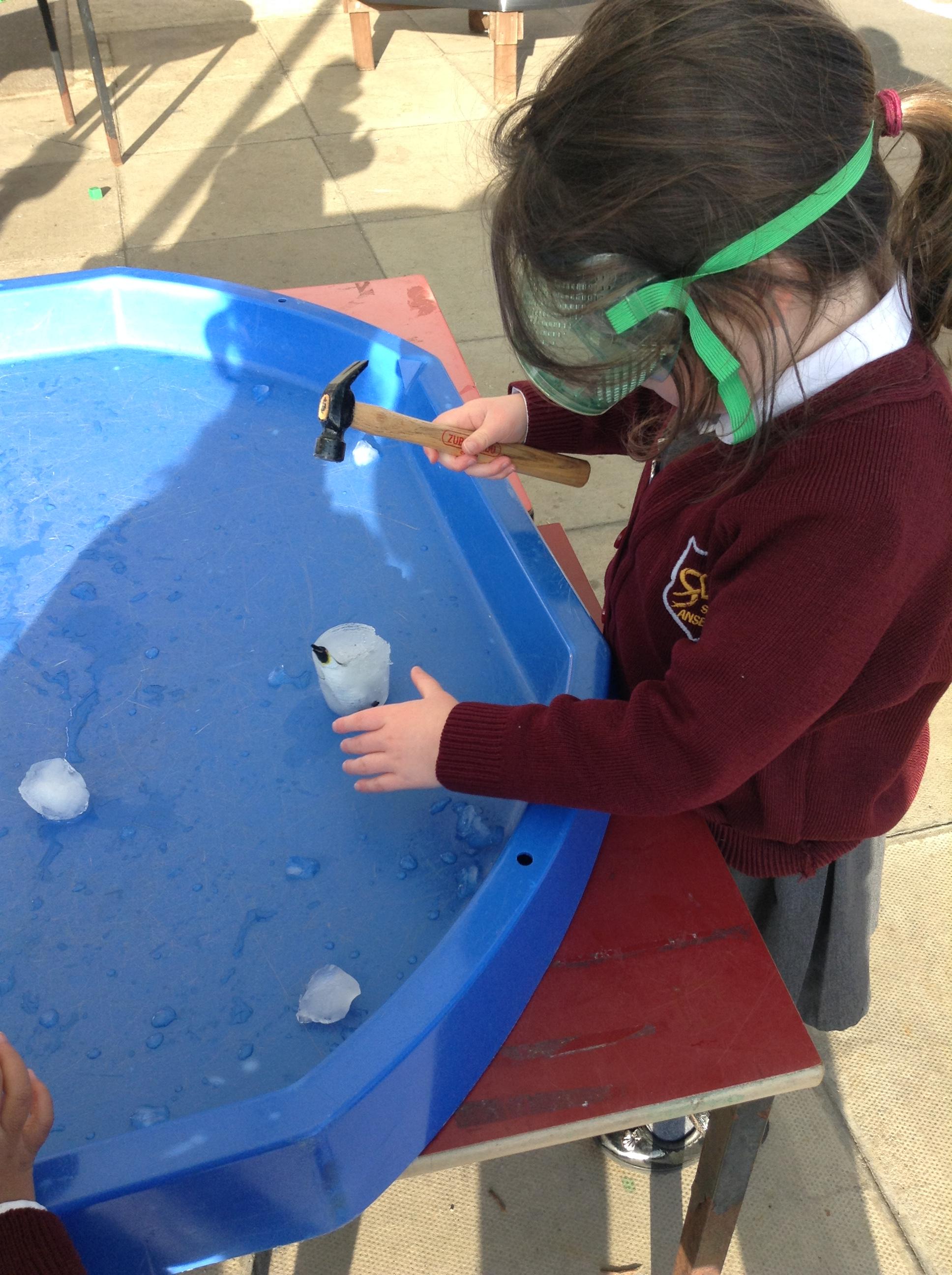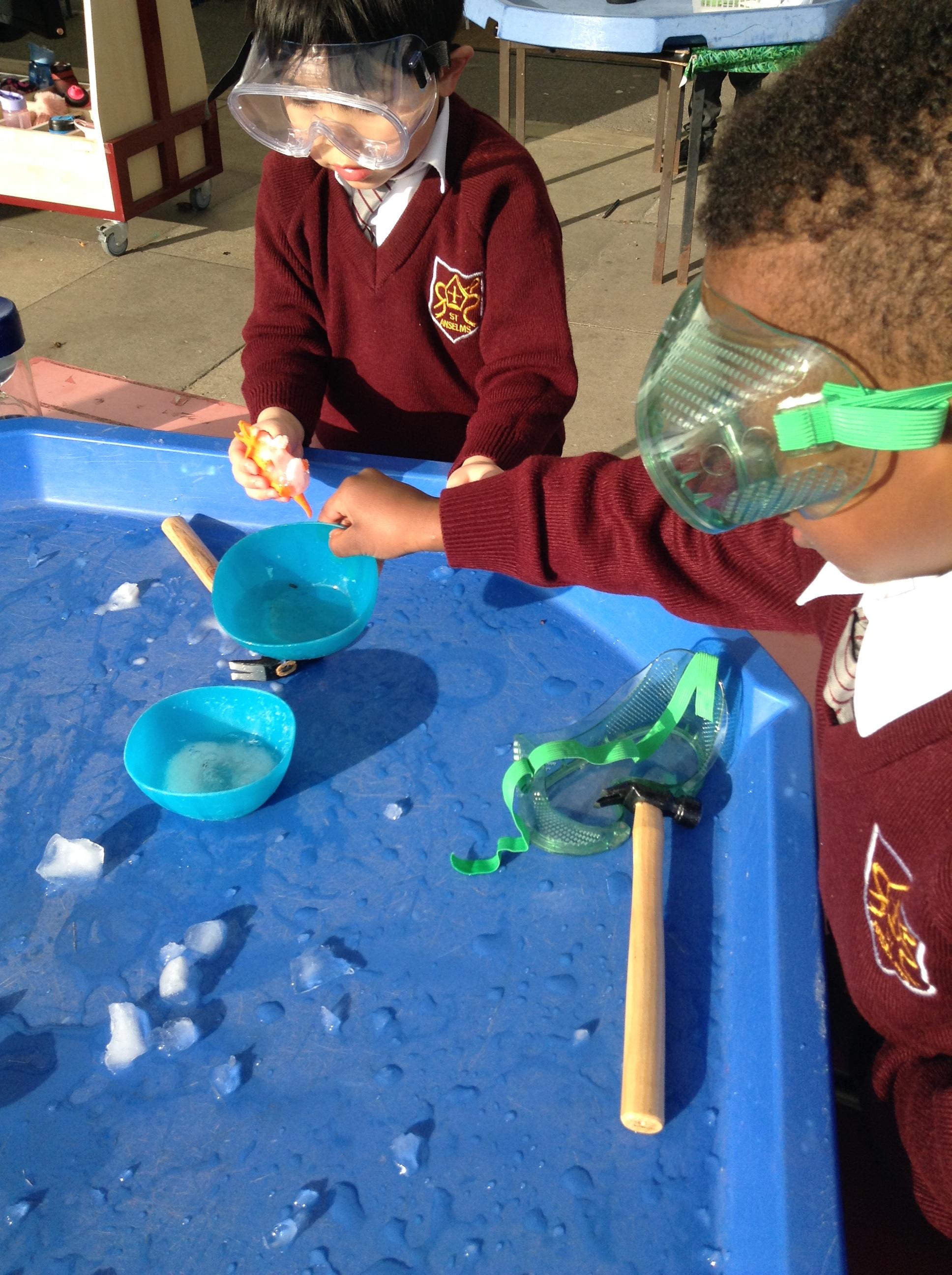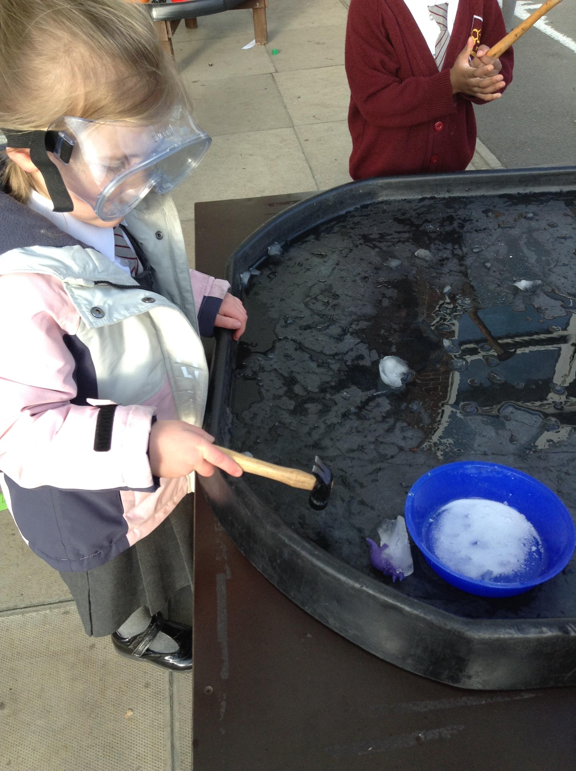 Then the Snow Queen visited our garden and turned some of the toys to ice! We rescued our toys by using hammers to break the ice. Some children used warm water and even salt to melt the ice.