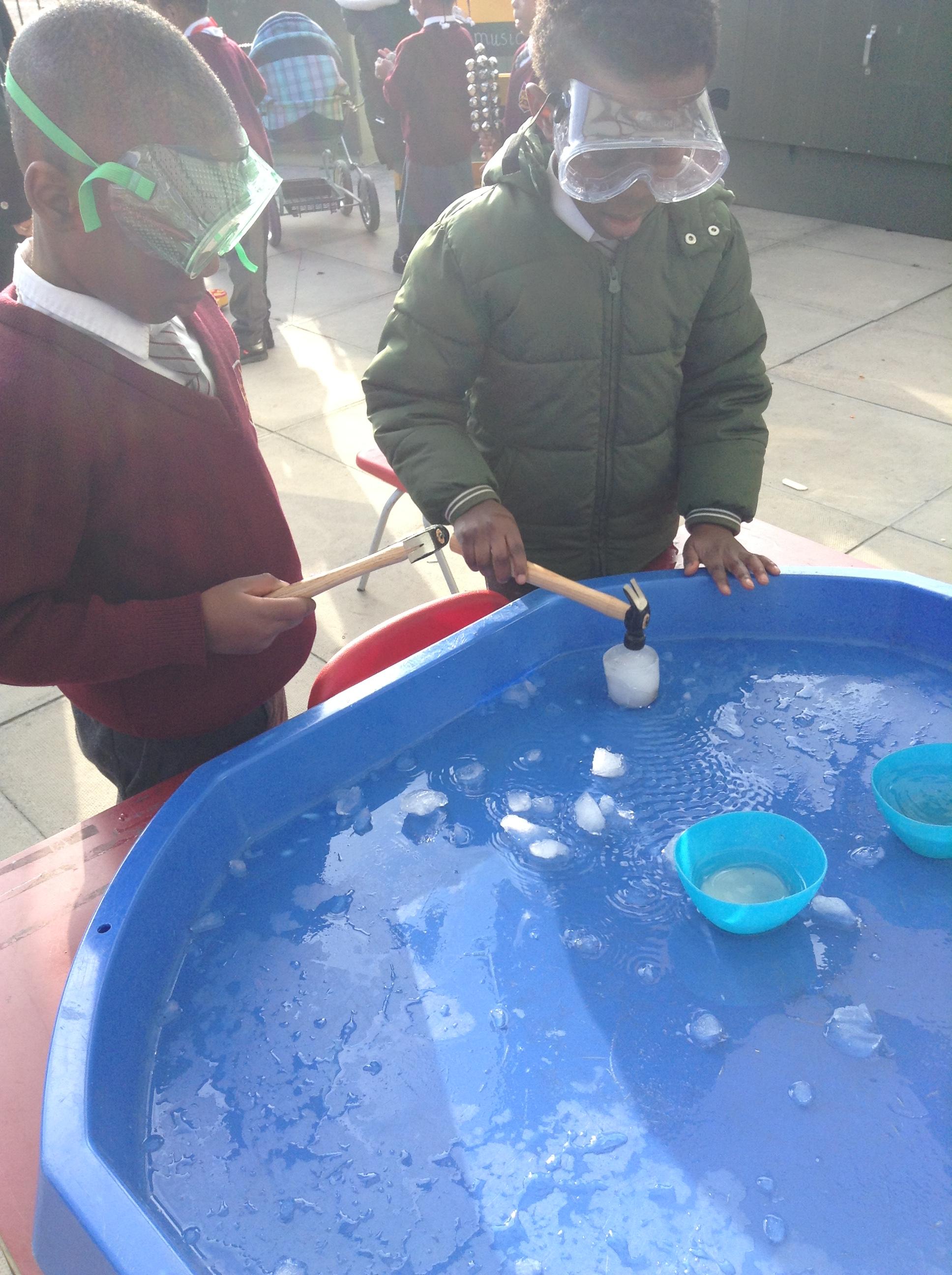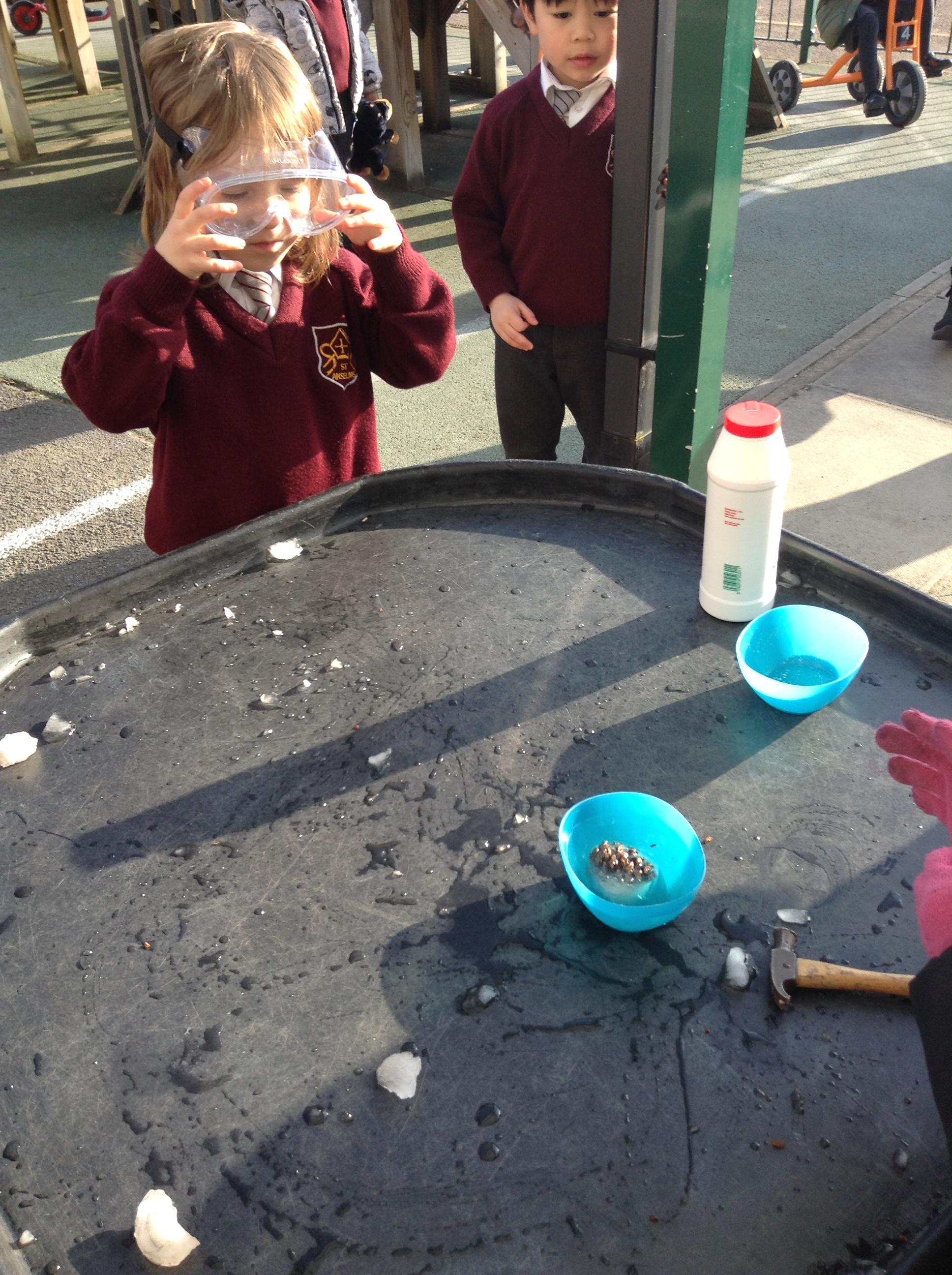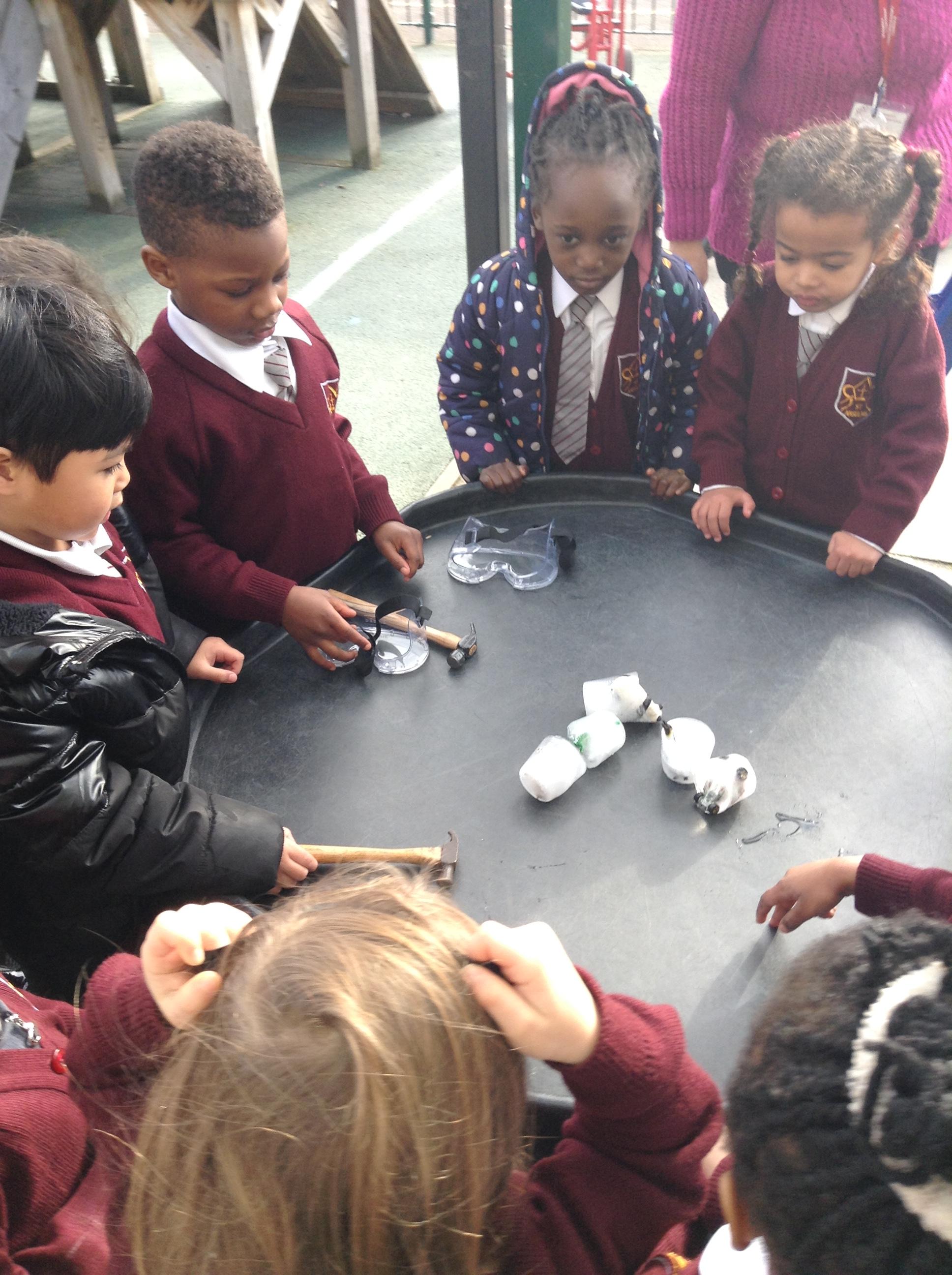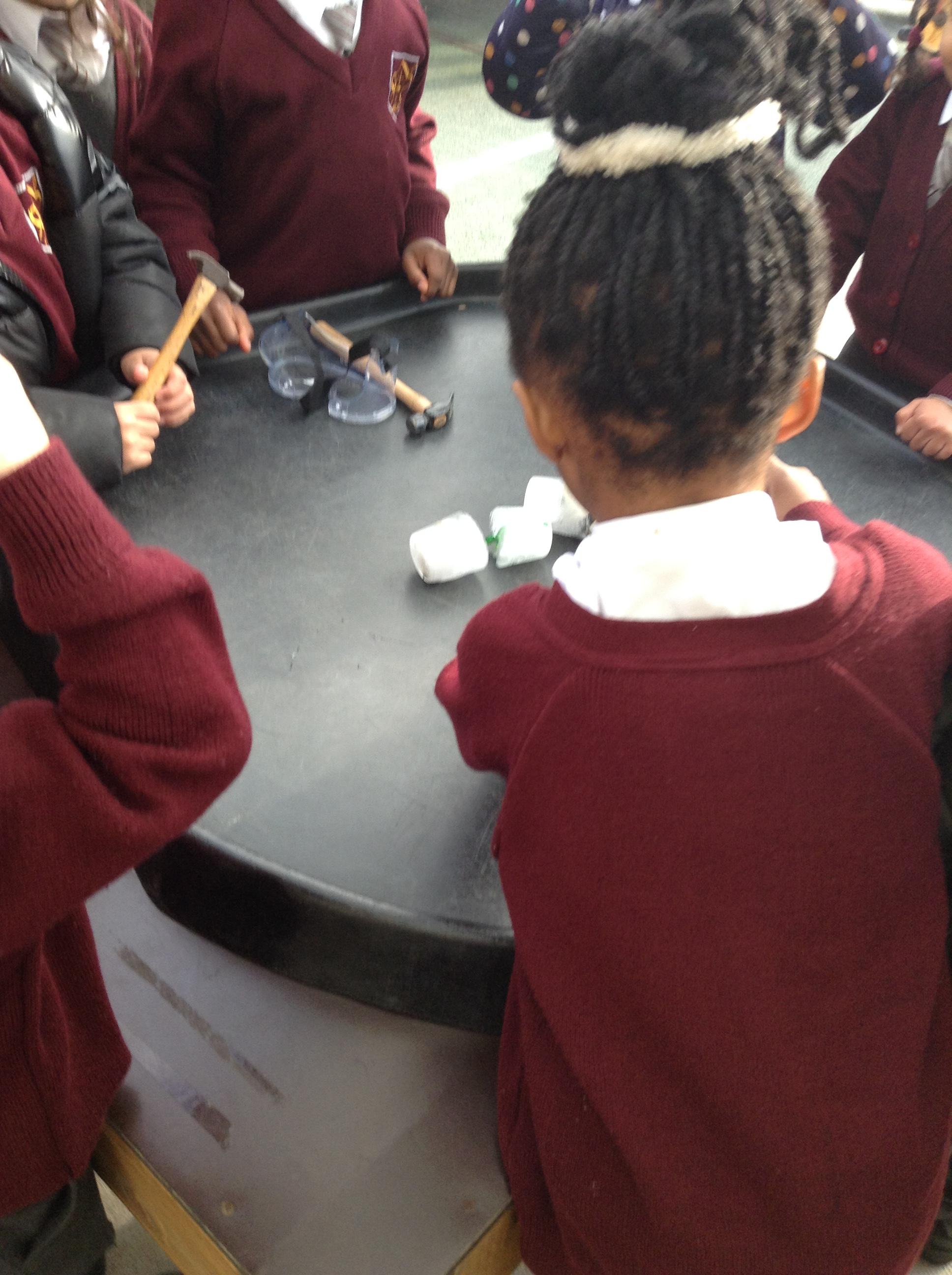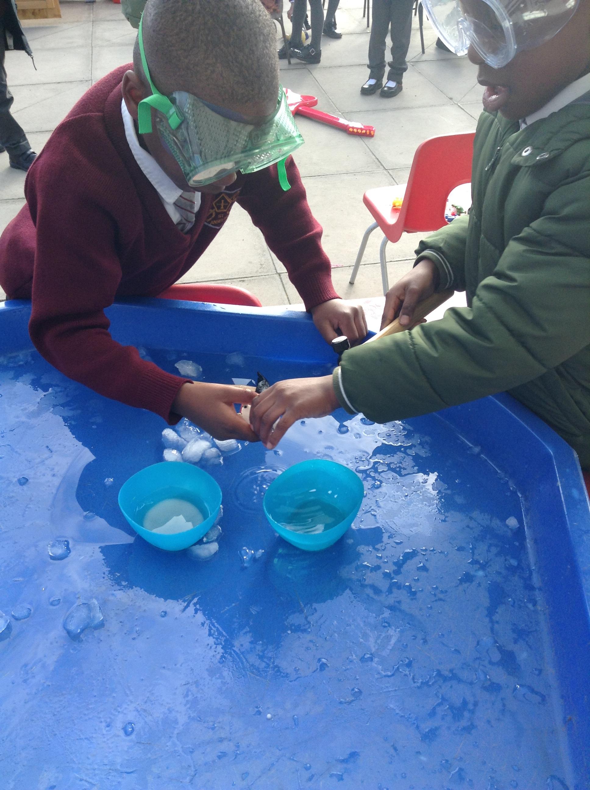 Then the Snow Queen visited our garden and turned some of the toys to ice! We rescued our toys by using hammers to break the ice. Some children used warm water and even salt to melt the ice.