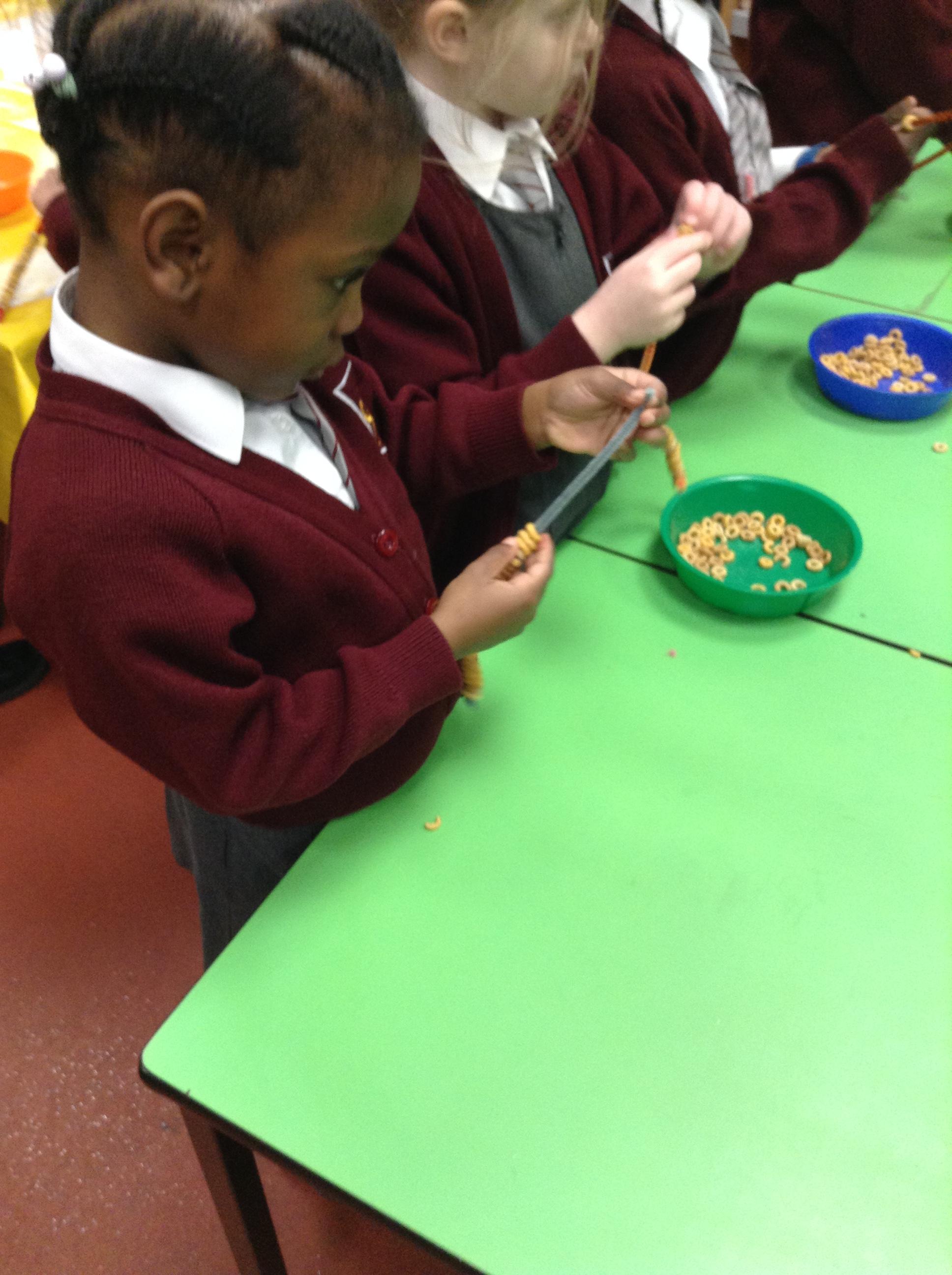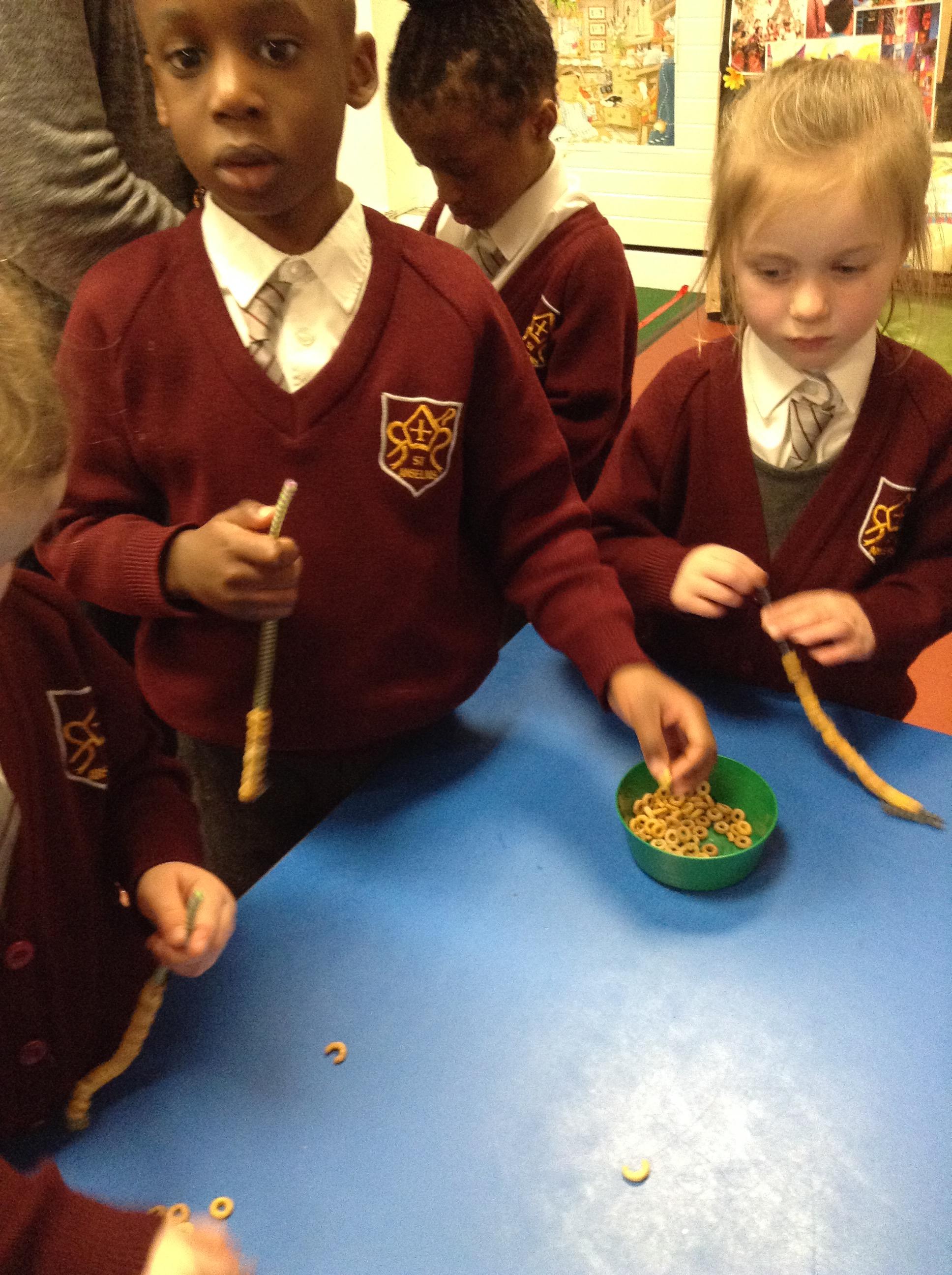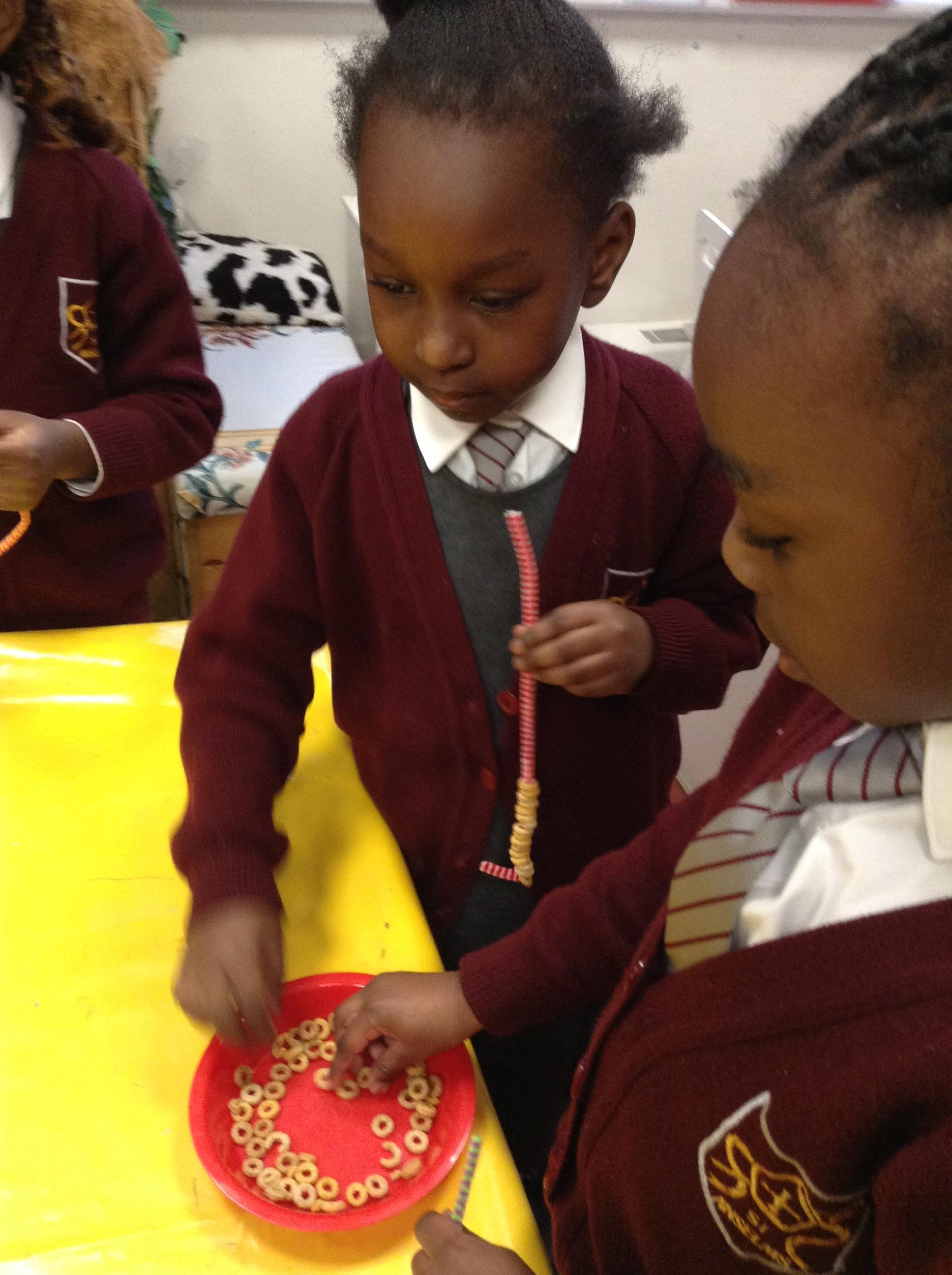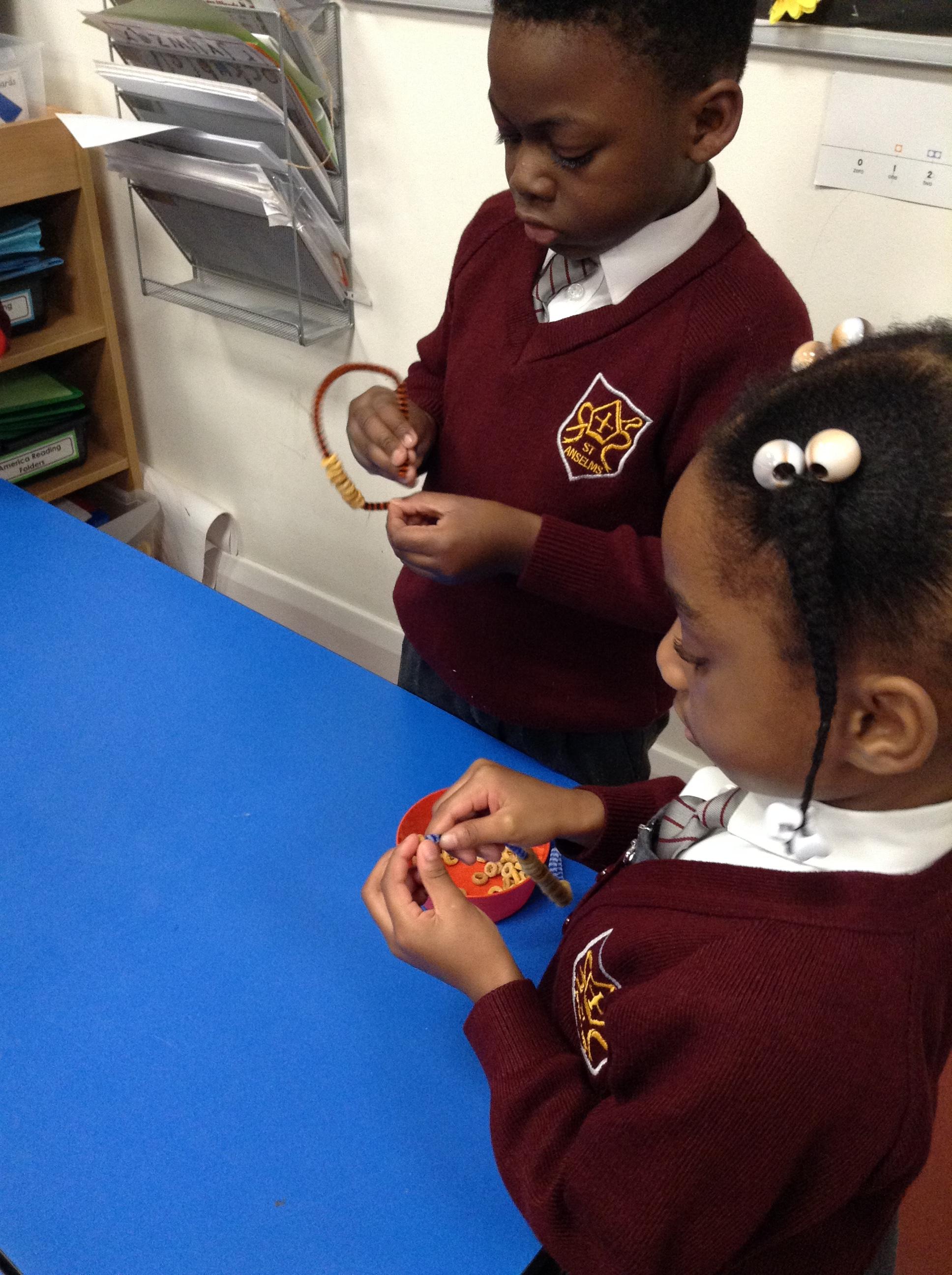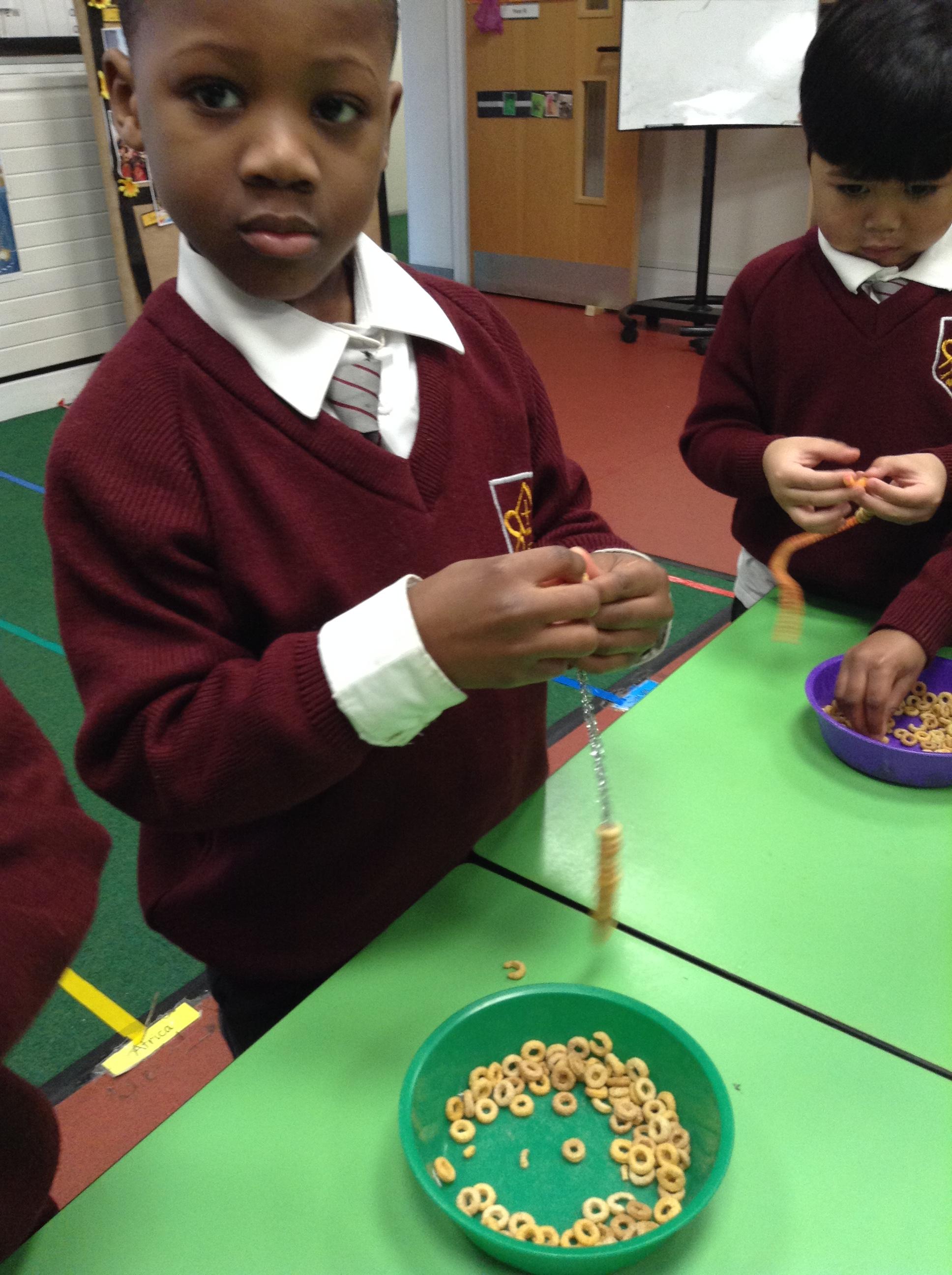 We made our own snow monsters after reading the story 'Betty and the Yeti'. We used junk modelling and thought carefully about what features we needed to include. After reading 'One Snowy Night' we thought about how hungry the poor birds might be in the winter and used cereal hoops threaded on to pipe cleaners to make bird feeders. We stayed very quiet and watched to see if any birds used the bird feeders.