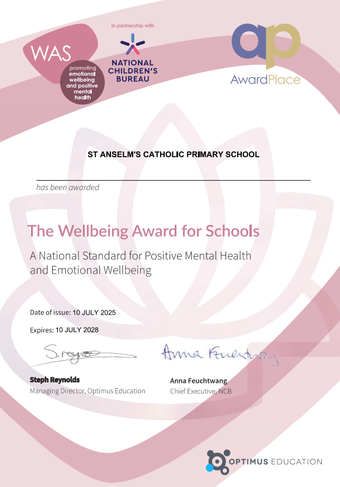 We are delighted to share that St. Anselm’s Catholic Primary School has successfully achieved reaccreditation for the Wellbeing Award for Schools in July 2025.